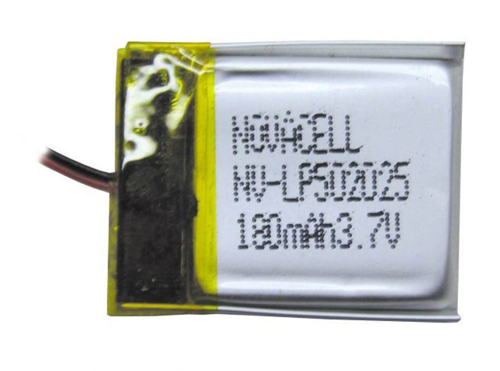 Lithium-Polymer Akku 180 mAh, mit Tiefentladeschutz, Abmessung.: 6.5 x 22 x 27 mm, 3.7 V, 4,2 Gramm, Entladestrom: bis 1,8 Ampere, mit Kabel ohne Stecker