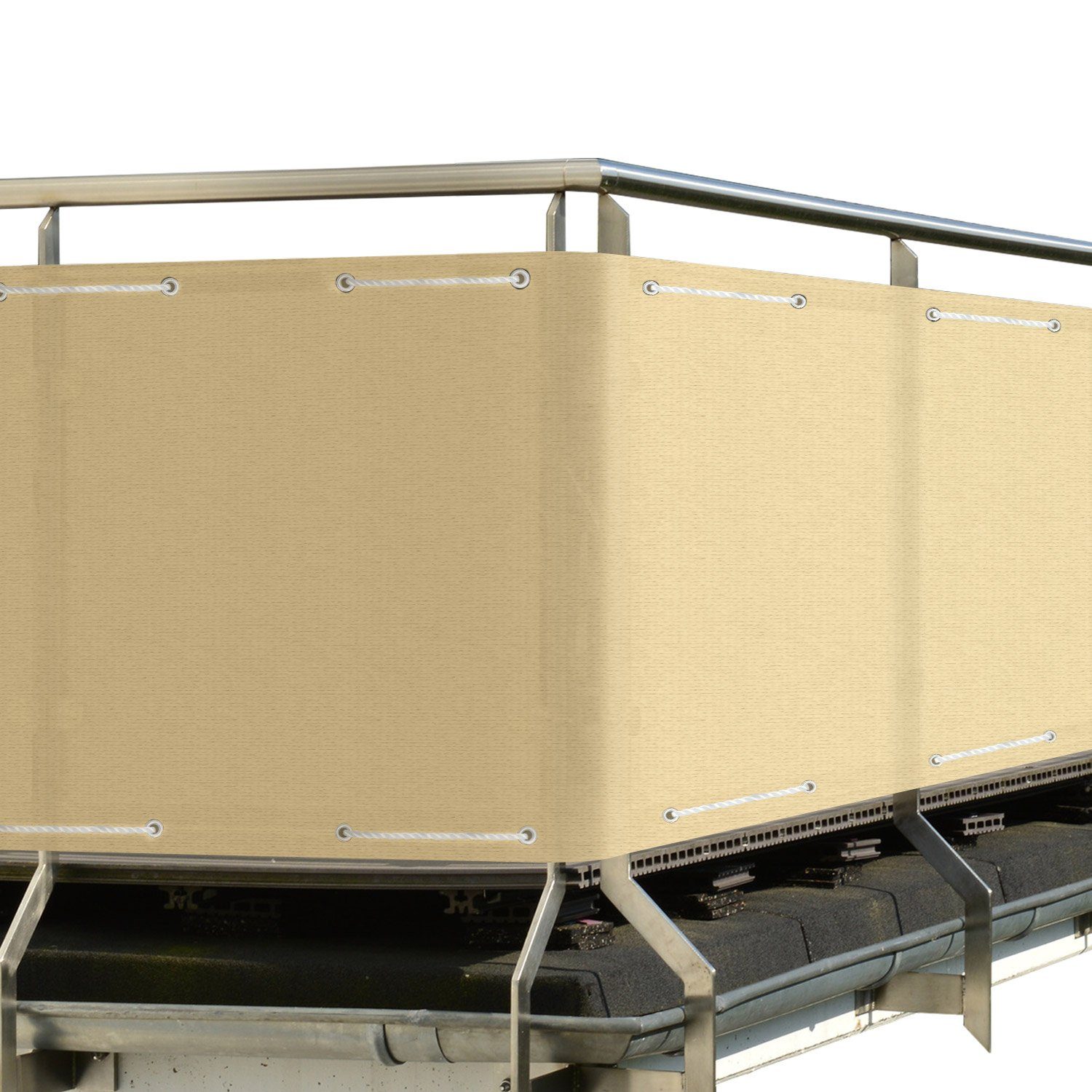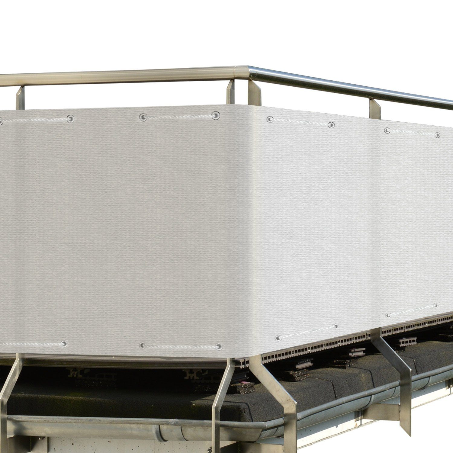 Der Sichtschutz für Balkon aus 100% HDPE-Strickgewebe und einer Grammatur von 165 g/m². Deshalb ist der Balkon Geländer Sichtschutz sehr langlebig und hält jeder Witterung stand.