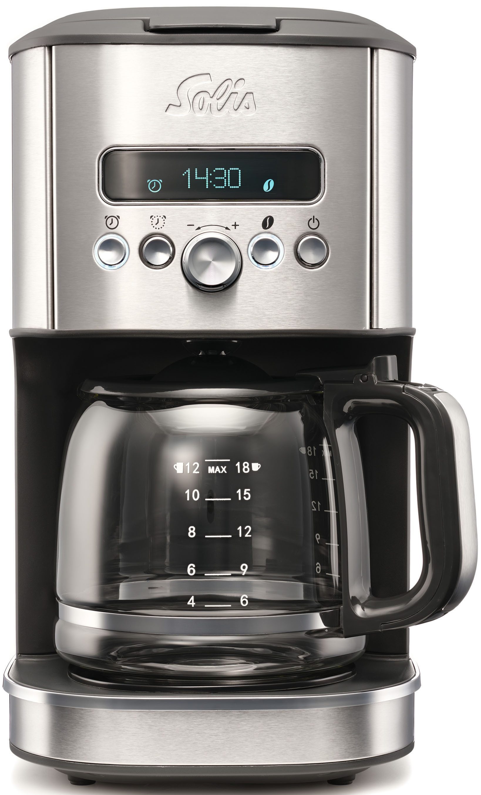 Впередe Vorteile | 24-Stunden-Timer-Funktion: Stellen Sie einfach den Timerein und wachen Sie zum unwiderstehlichen Geruch frisch gebrühten Kaffees auf. Aromawahlschalter: Die Aromafunktion ermöglicht einen stärkeren, aromatischeren Kaffee, wenn kleinere Kaffeemengen aufgebrüht werden. Duschkopftechnologie: Der Duschkopf verteilt heißes Wasser gleichmäßig und stellt sicher, dass der Kaffee sein volles Aroma entfaltet. Großer Wassertank: Mit einer Kapazität von 1,8Litern kann der Wassertank mehr Wasser fassen als andere vergleichbare Maschinen. Kaffeefiltergröße: 1x6, 1x4 Messlöffel, Reinigungserinnerung, Display Warmhaltefunktion: Die einstellbare Warmhaltefunktion sorgt für 30 Minuten lang perfekt temperierten Kaffee. |