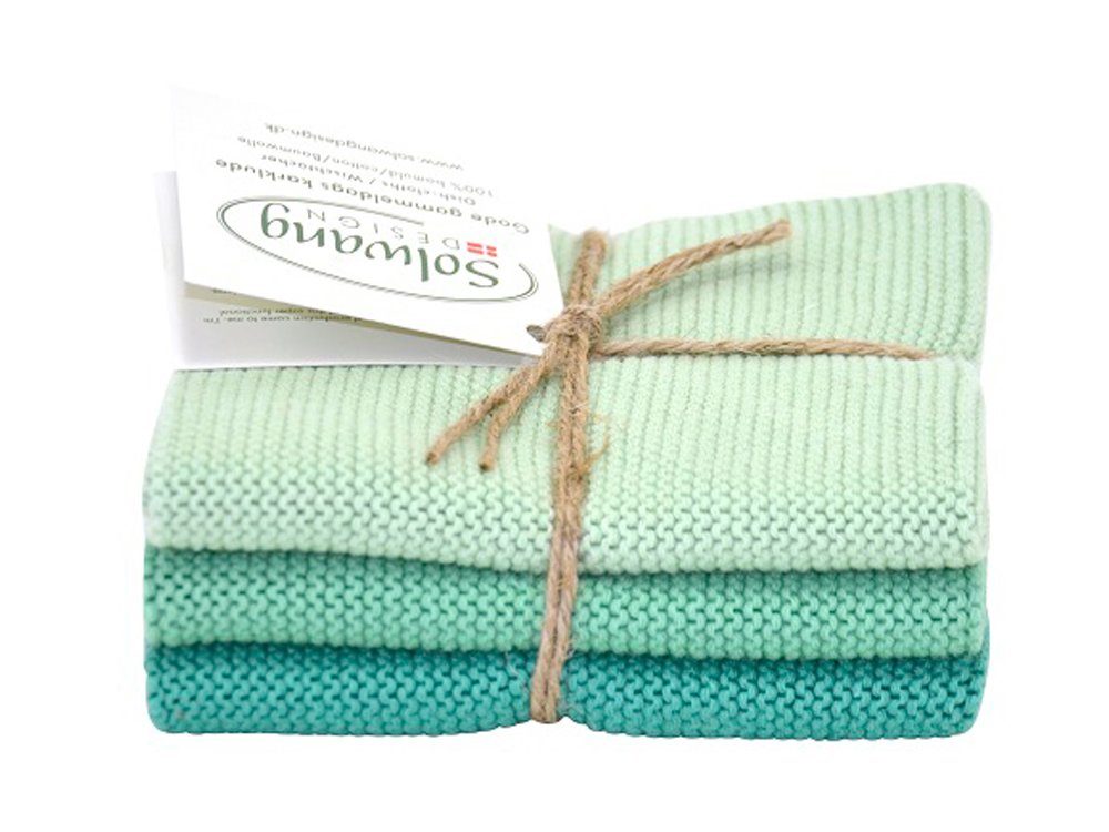 In seinen wunderschönen Grüntönen und dem beliebten Solwang Design ist das Dreier-Set der Hingucker in jeder zeitgemäßen Kücheneinrichtung. Der schlichte Krausrechtsstrick ist nicht nur dekorativ, sondern zeichnet sich außerdem durch besondere Saugfähigkeit aus.