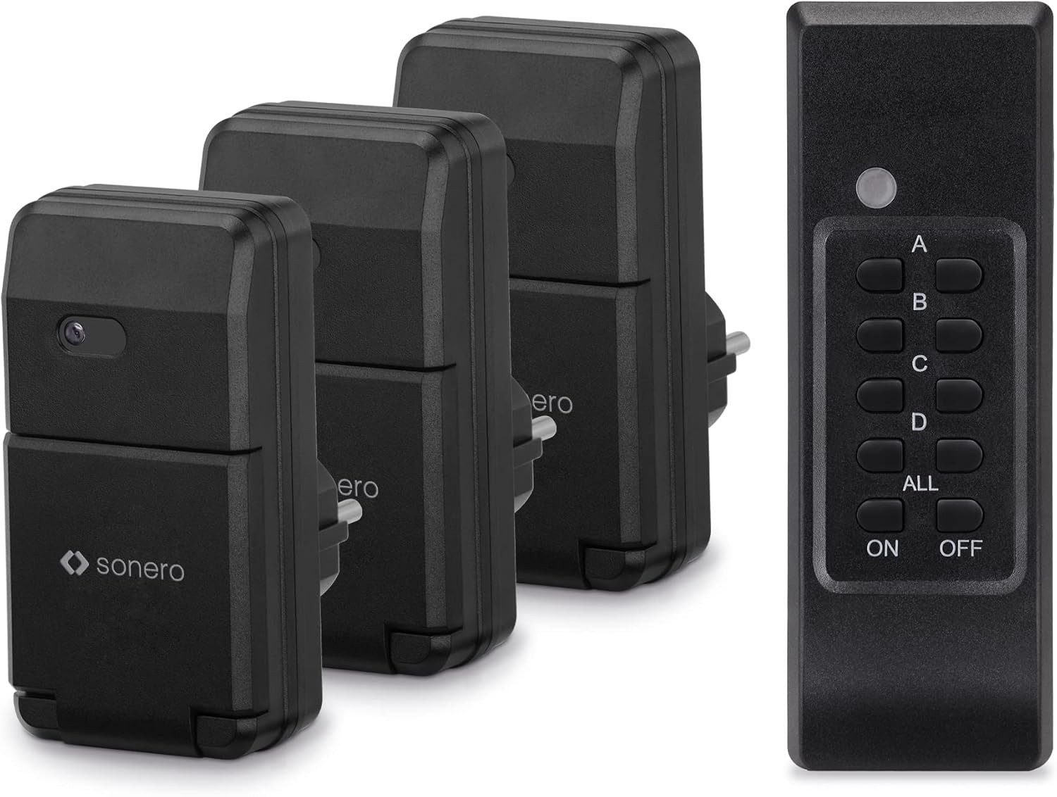 sonero Funksteckdosen Set (3x Funksteckdose, 1x Funkfernbedienung), Outdoor, schwarz