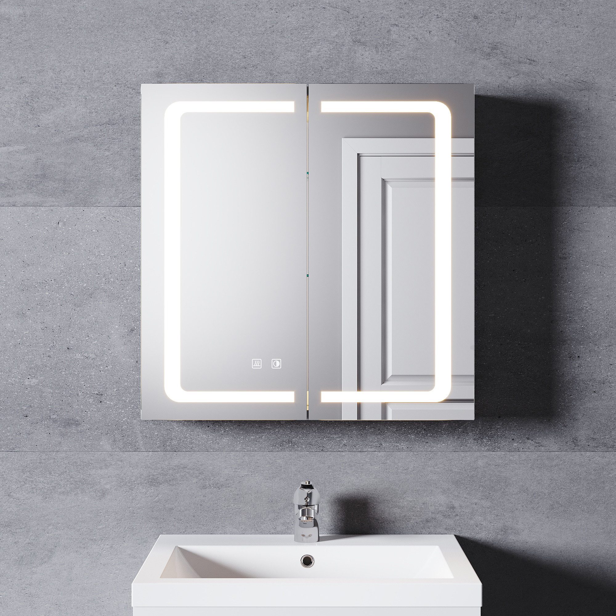 SONNI LED Spiegelschrank Aluminum mit Steckdose & Beschlagfrei - 65x65x13.3cm