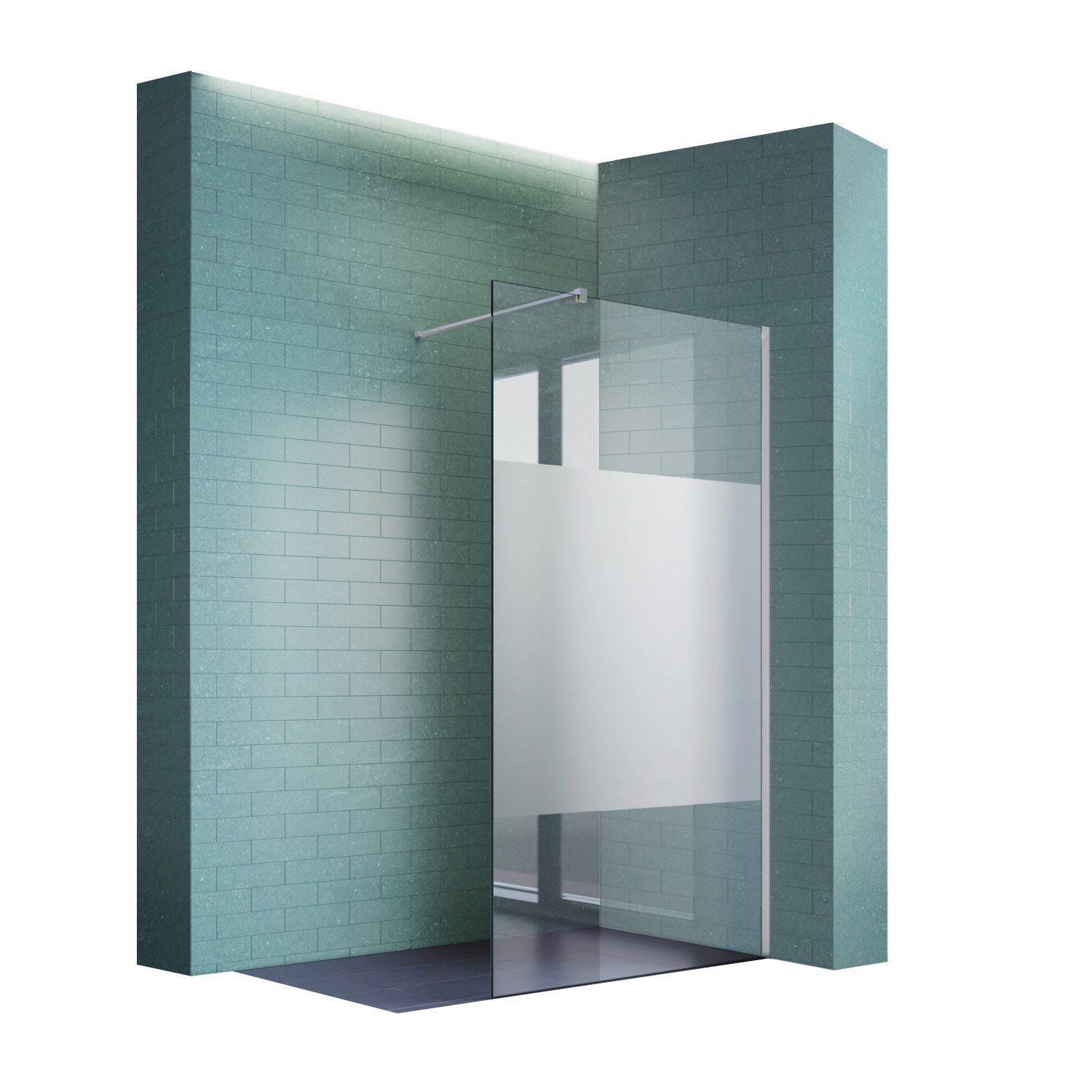 SONNI Walk in Duschwand Duschtrennwand aus 8 mm Teilsatiniert Glas inkl. Nano Glas Walk-In Dusche Duschkabine mit Haltestange