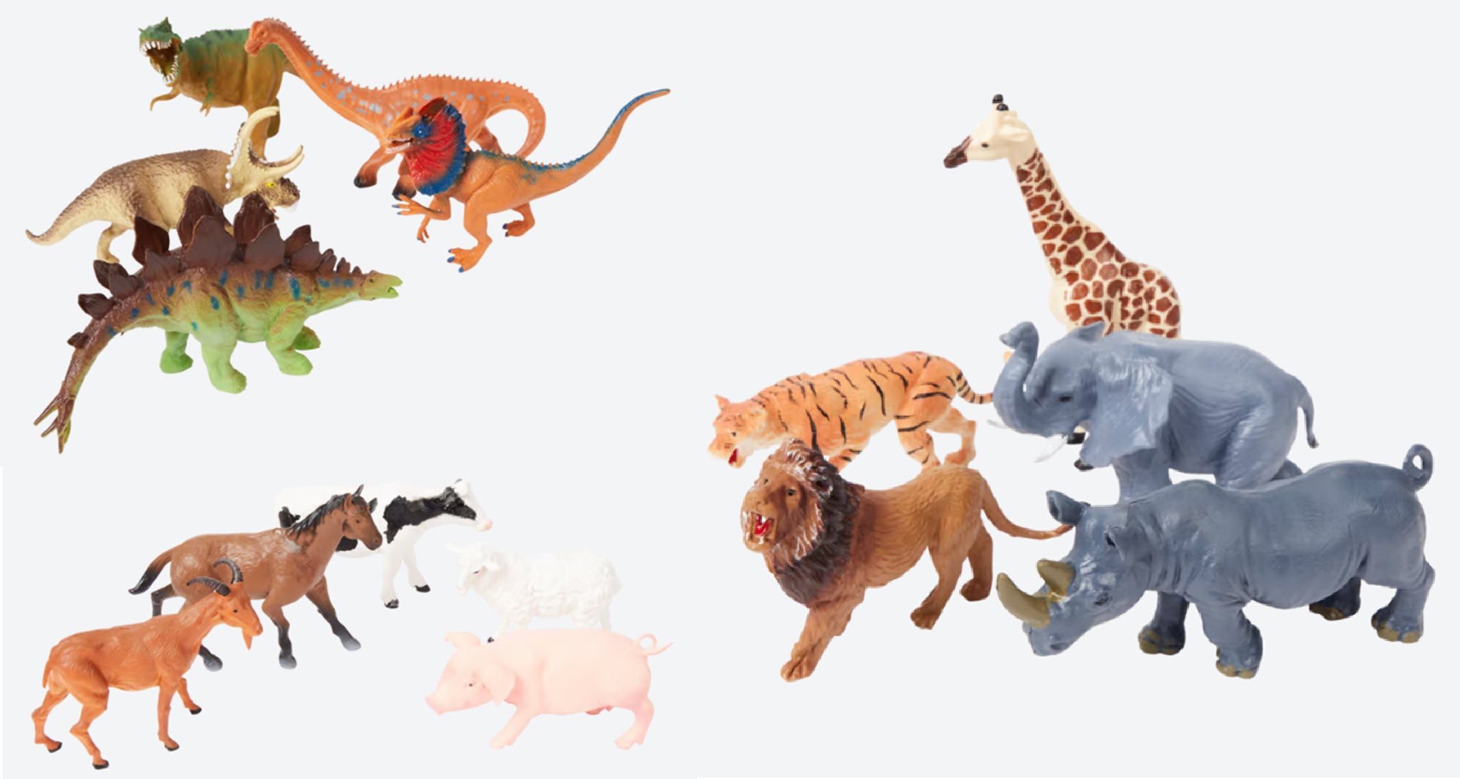 Tierfiguren-Spielset 5 Stück • 5 Tiere pro Verpackung • Stimuliert die Phantasie Ihres Kindes Gestalte deinen eigenen Dschungel, Zoo oder Bauernhof und erlebe ein Abenteuer mit diesen Spielzeugtieren, aber sei vorsichtig, es lauert Gefahr. Verschiedene Sets wie Bauernhoftiere, Farm Animals Wilde Tiere, Wild Animals, Dinosaurier