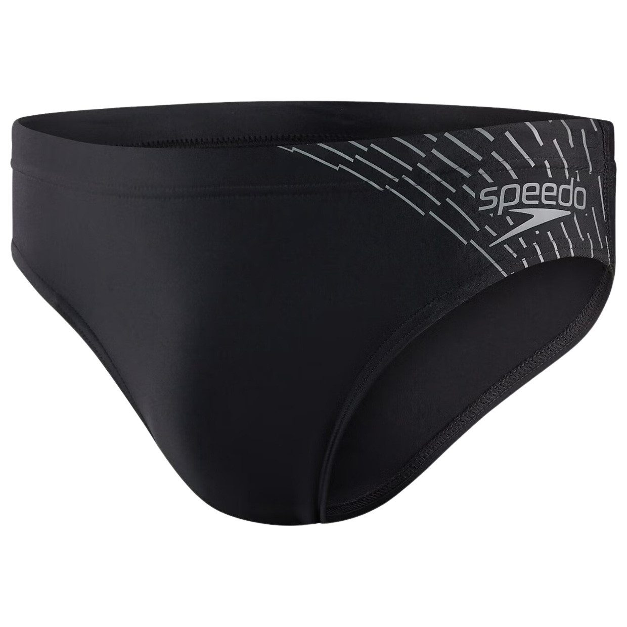 Trage die Medley Badehose mit Logo und Tunnelzugbund, verziert mit einem dezenten kinetischen Wellen-Print, für ein angenehmes Tragegefühl während des Trainings.