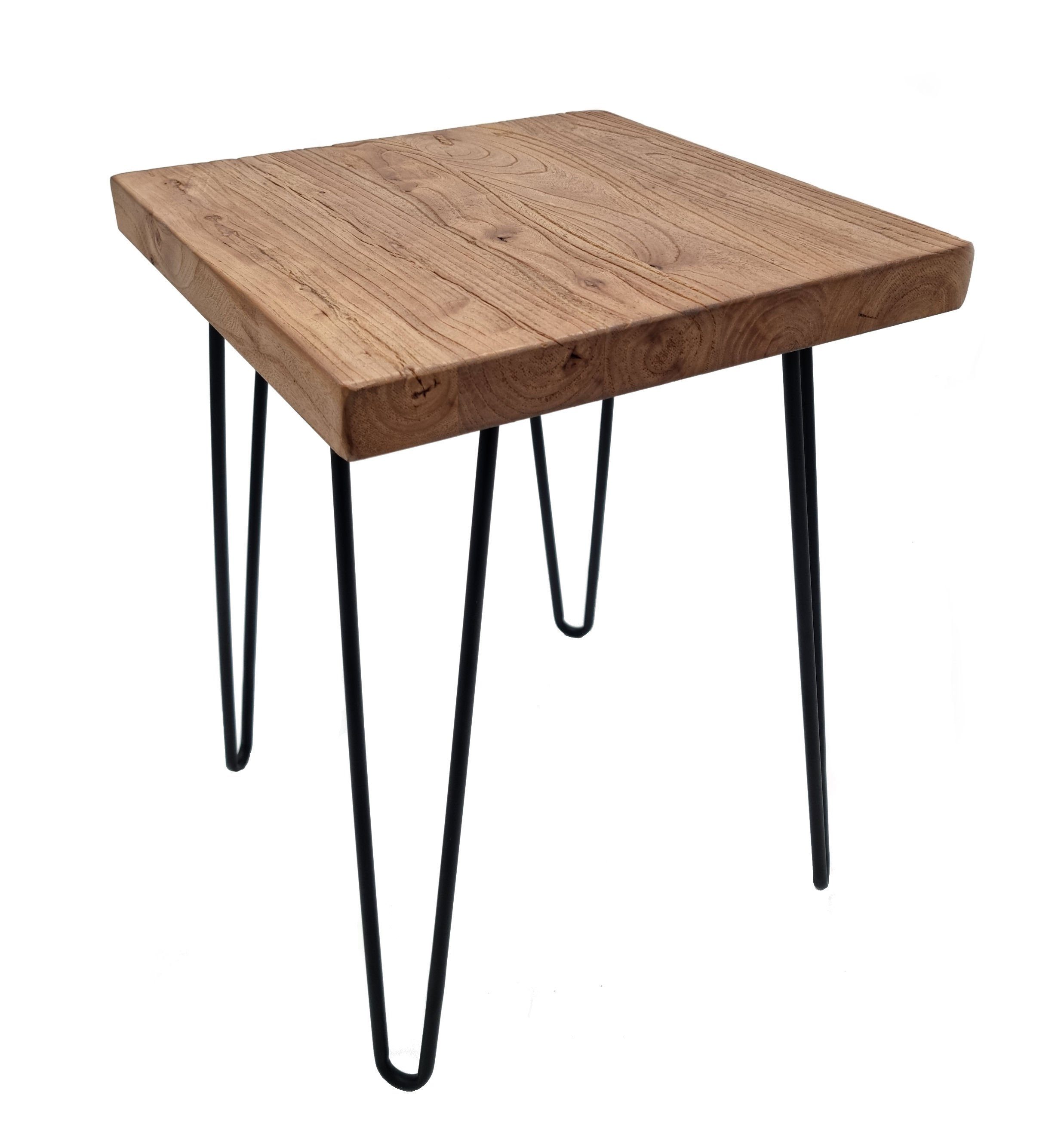 Beistelltisch aus Ulmenholz - eckig / 40 cm - Massivholz Tisch mit 4 Beinen aus Metall