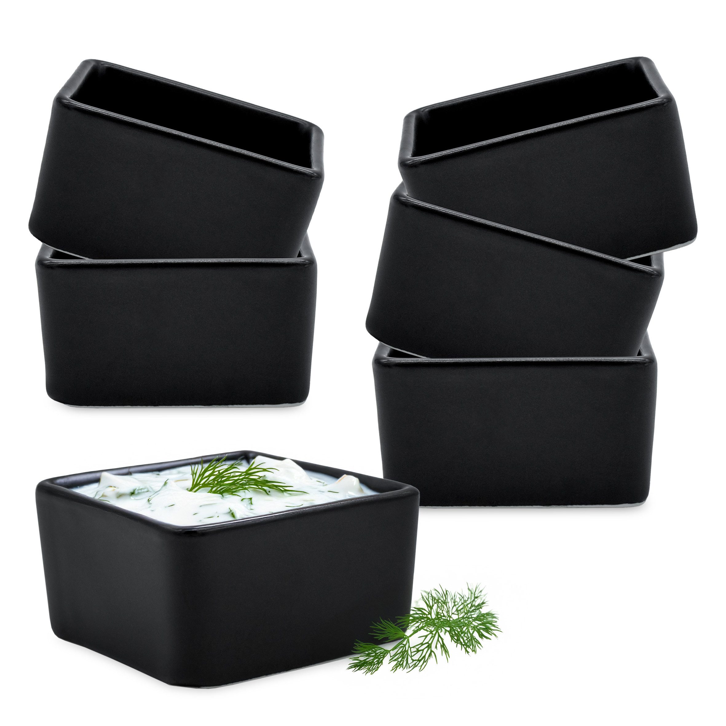 Keramik Dipschale eckig 7 x 7 cm schwarz matt - 6er Set - Kleine Schüssel für Saucen und Snacks