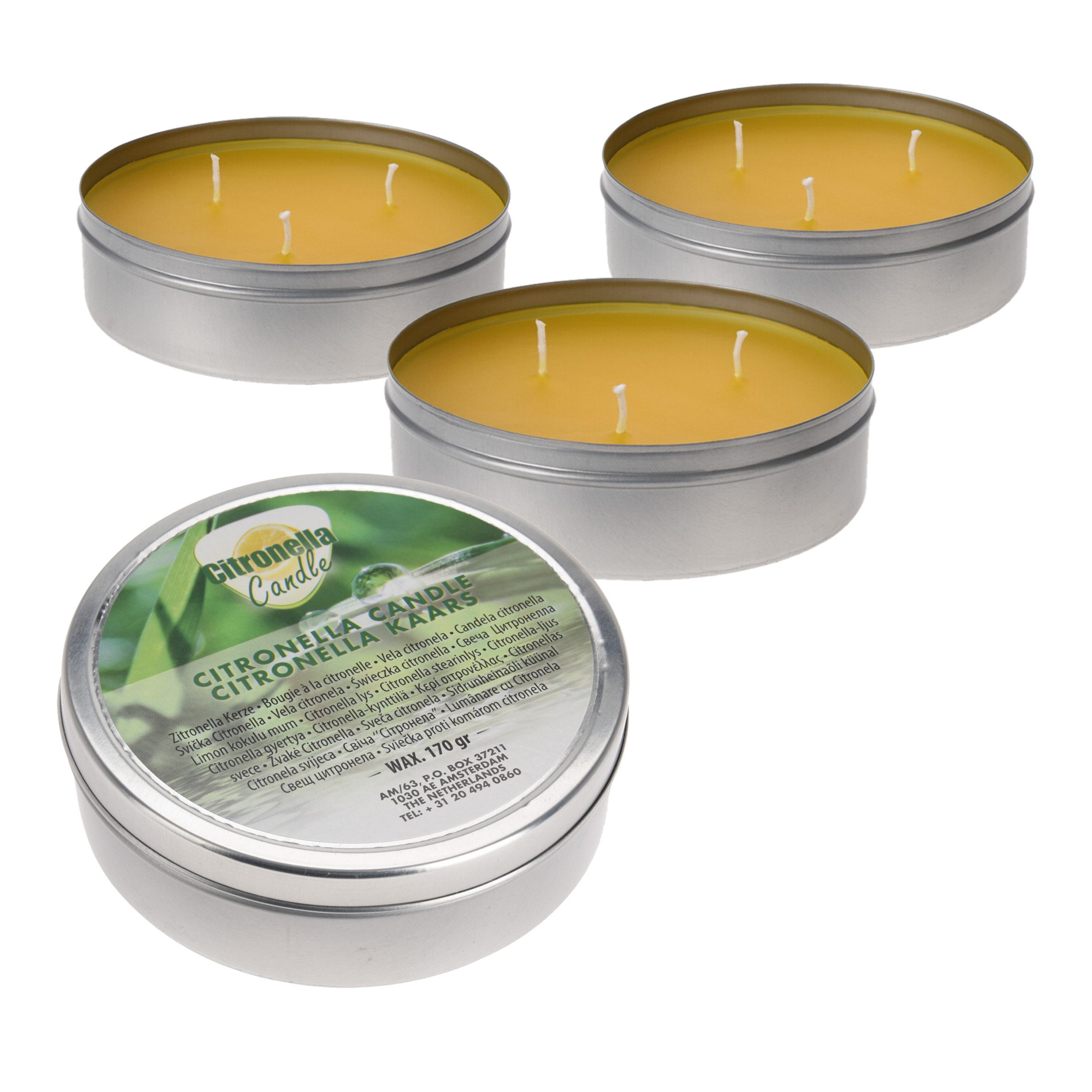 Citronella 3-Docht Kerze mit Deckel 11 cm - 4 Stück - Duftlicht mit Zitronen Aroma