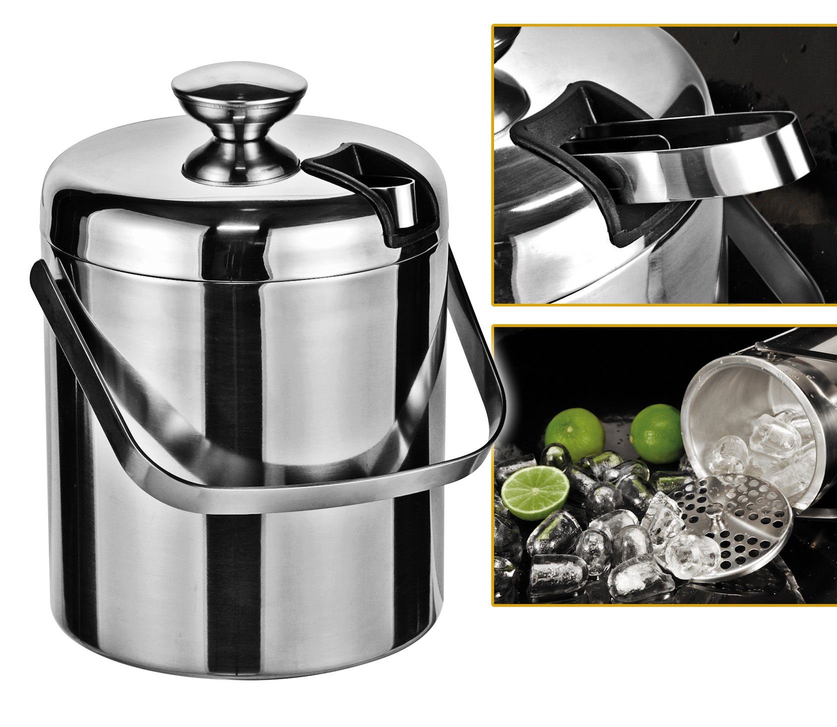 Edelstahl Eiskühler mit Deckel und Eiswürfelzange - 20 x 15 cm - Metall Eiswürfelbehälter mit Tragegriff