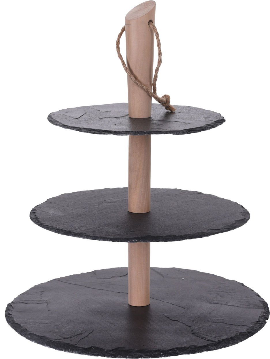 Schiefer Etagere 3-stöckig - 36 cm - Servierplatte mit Holz Ständer