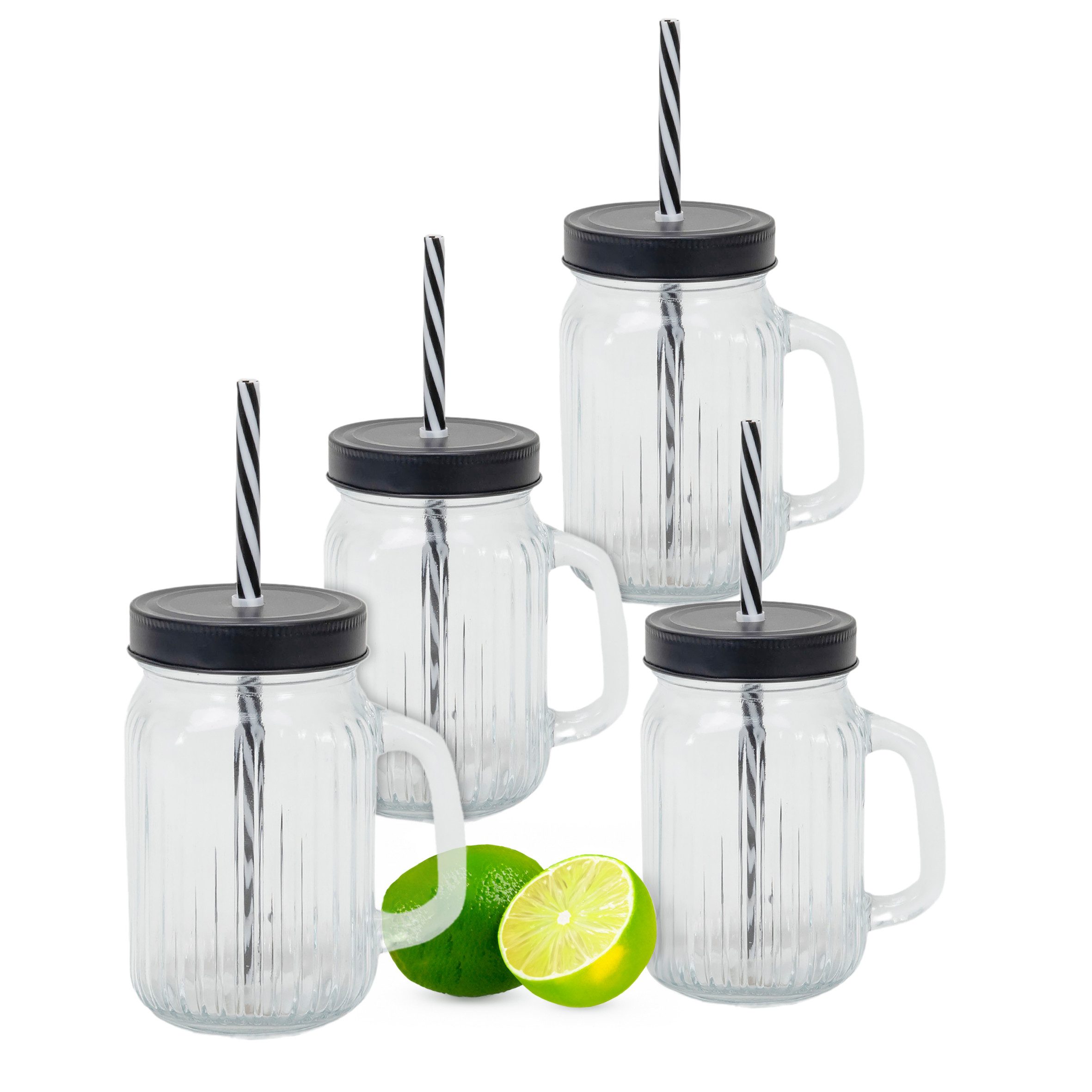 Deckelglas mit Henkel inklusive Strohhalm im 4er Set jeweils ca. 450 ml Fassungsvermögen