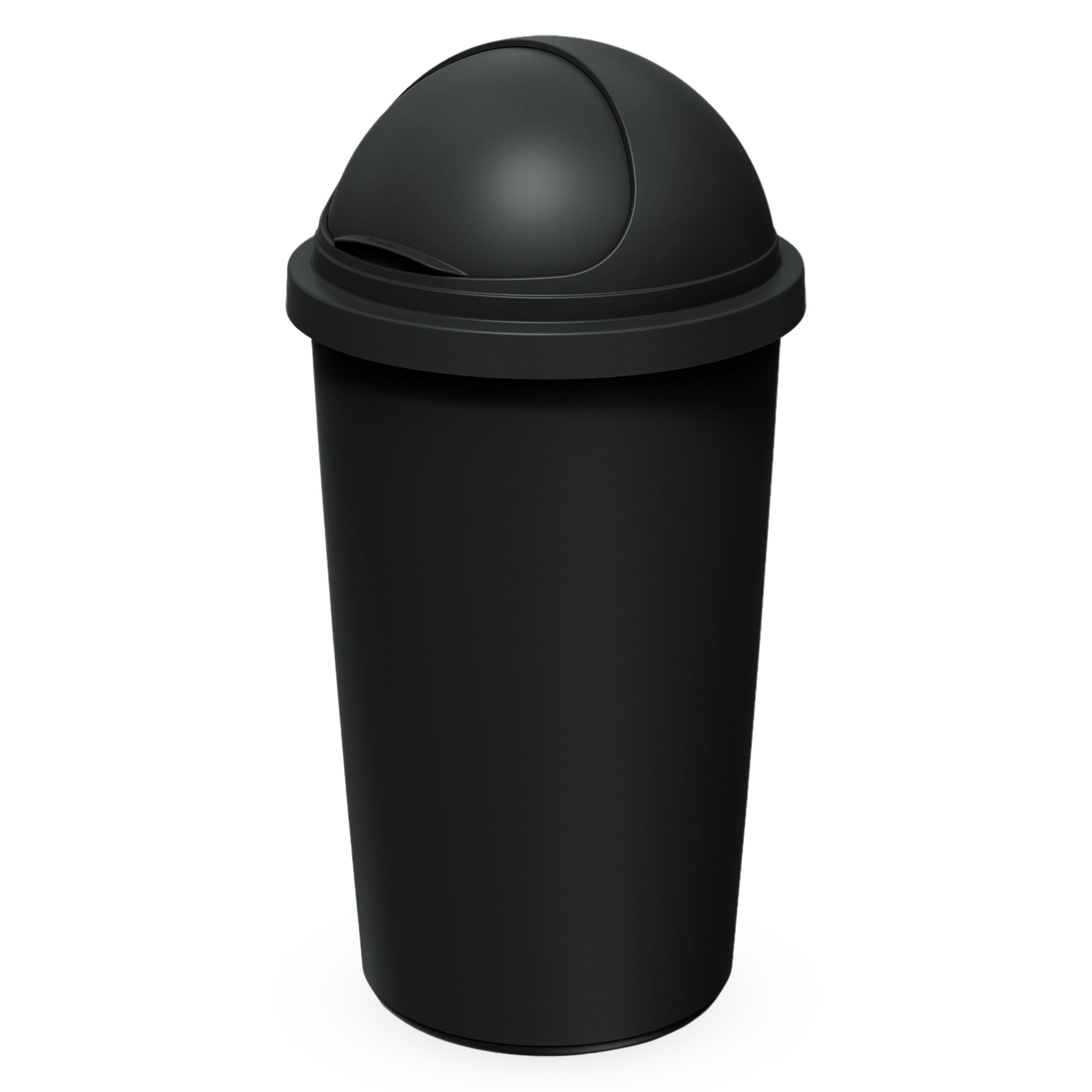XXL Abfalleimer mit Kuppel Deckel schwarz - 50 L - Runder Mülleimer mit Schiebedeckel
