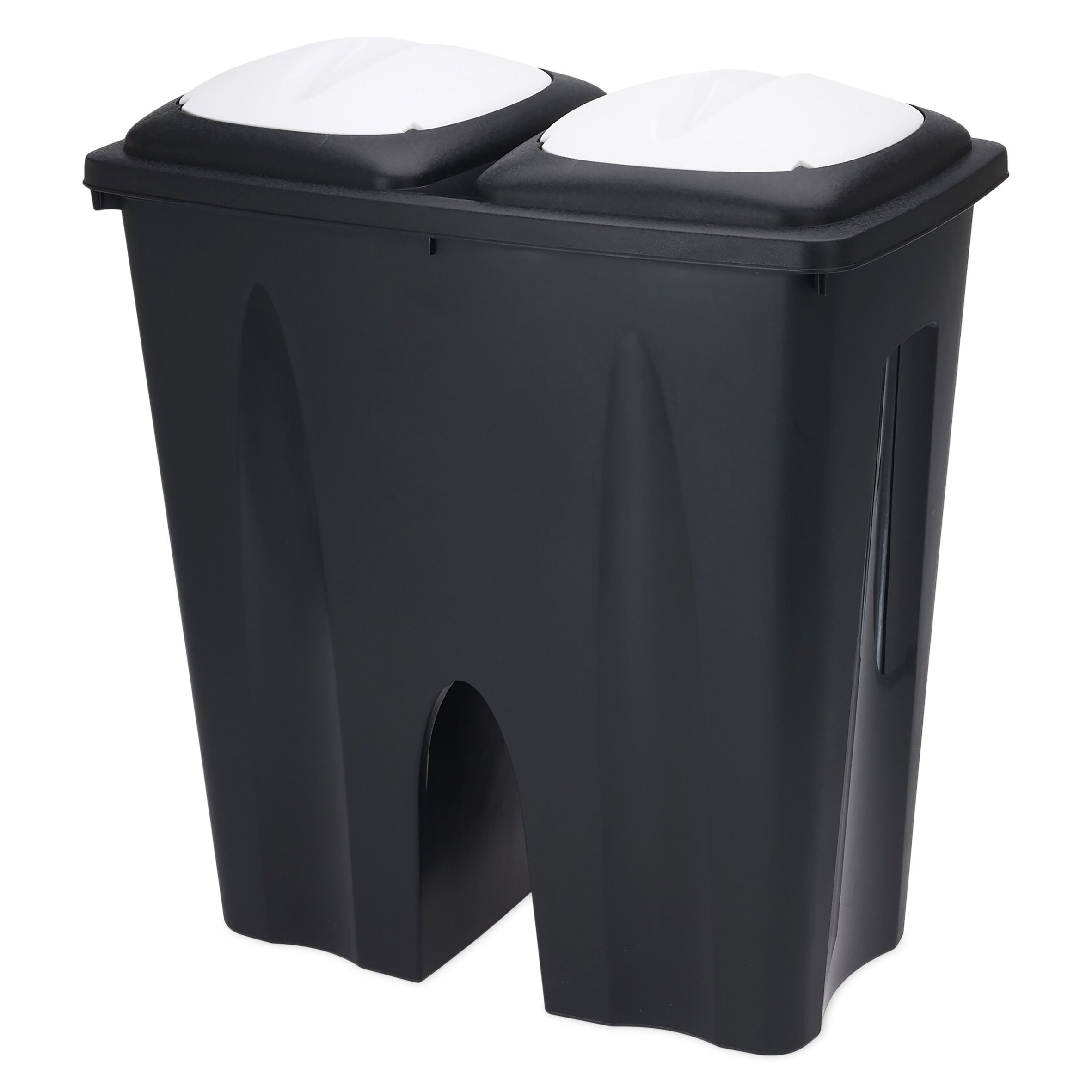 Abfallbehälter mit 2 Kammern aus Kunststoff in schwarz mit weißen Push Deckeln Fassungsvermögen ca. 2x 25 Liter