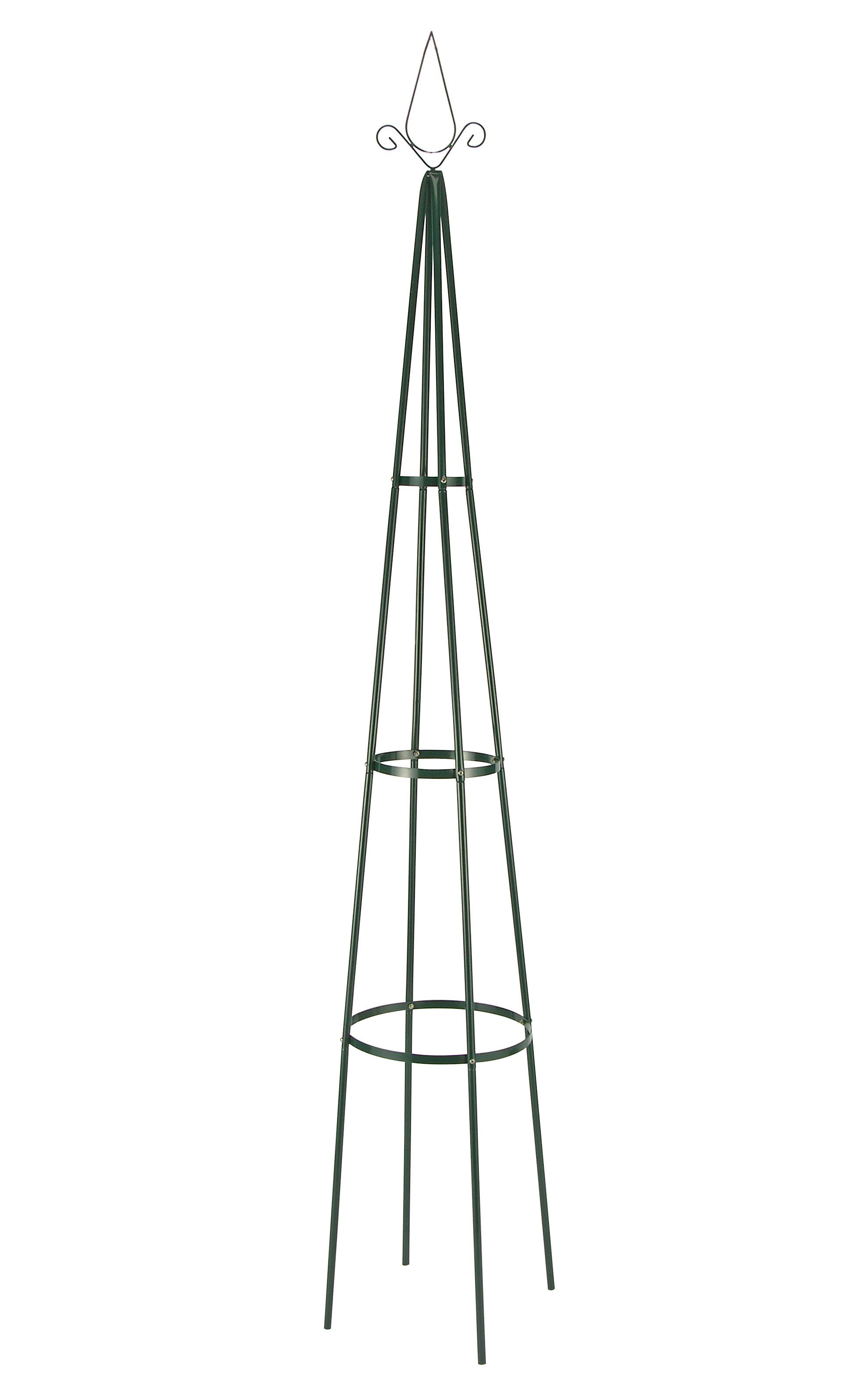 Rankturm aus pulverbeschichtetem Metall in grün mit ca. 200 cm Höhe mit dekorativer Spitze
