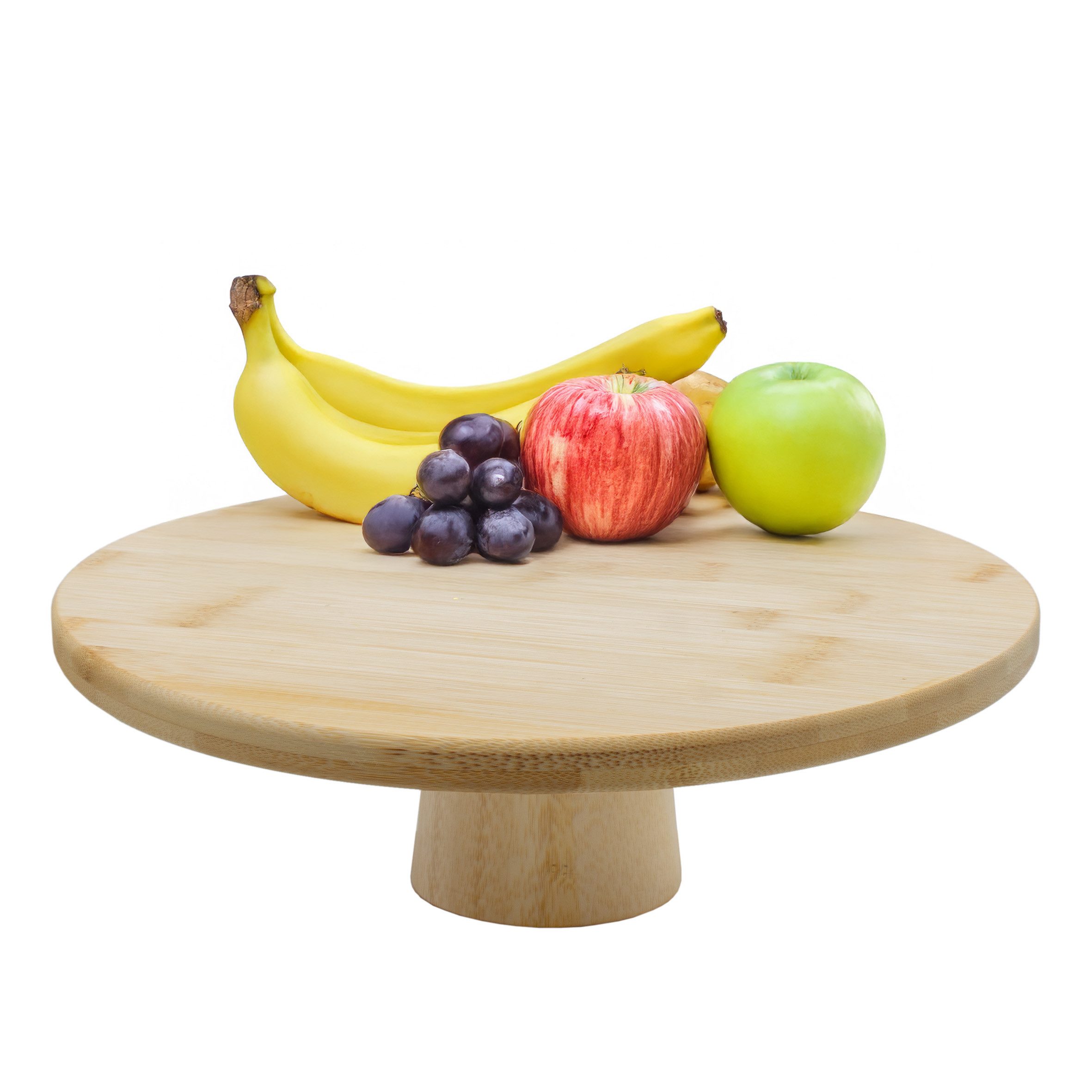 Servierplatte aus lebensmittelechtem Bambusholz rund ca. 28 cm Durchmesser mit Standfuß