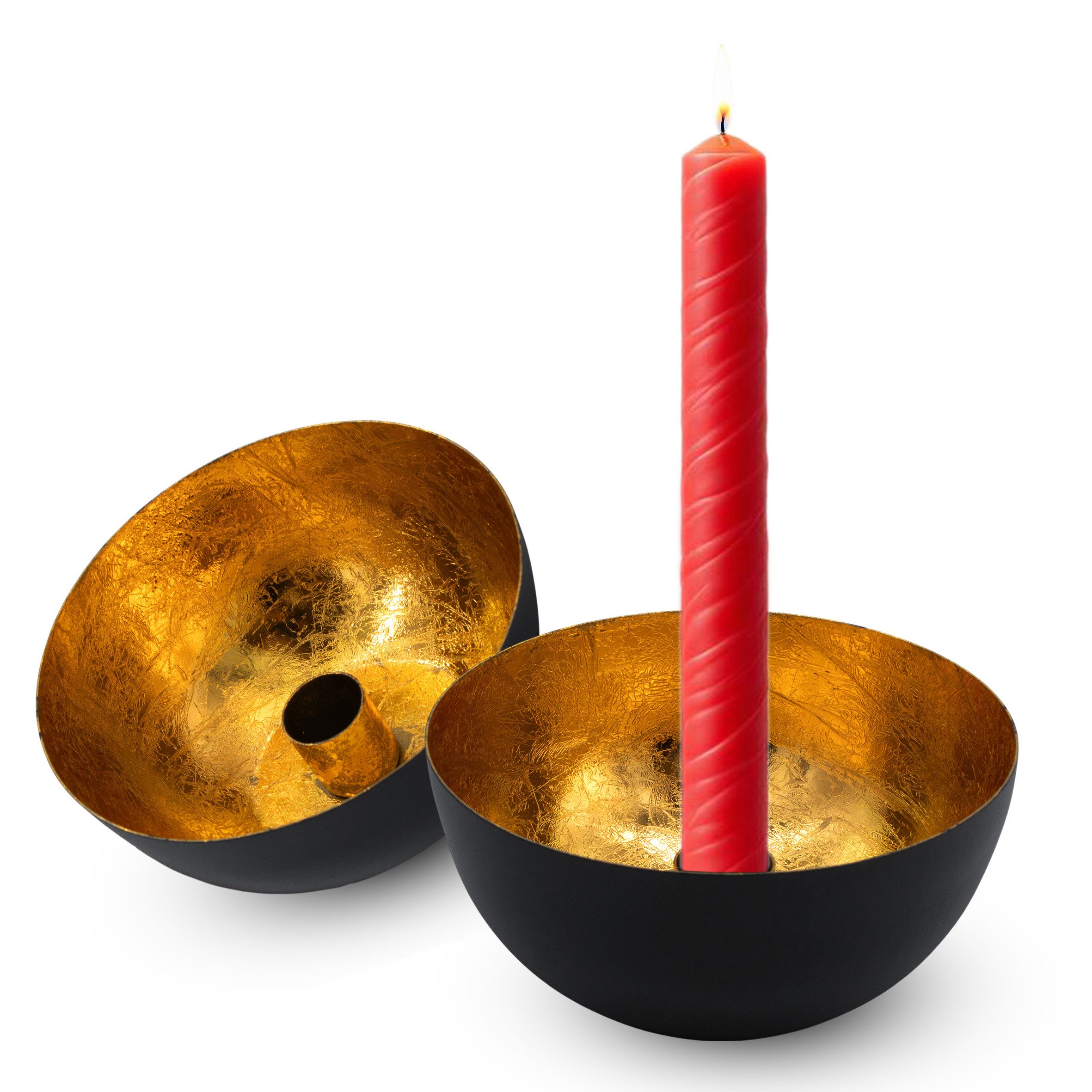 Orientalisch moderner Stabkerzenhalter in schwarz ca. 13 cm Durchmesser innen mit goldener Beschichtung
