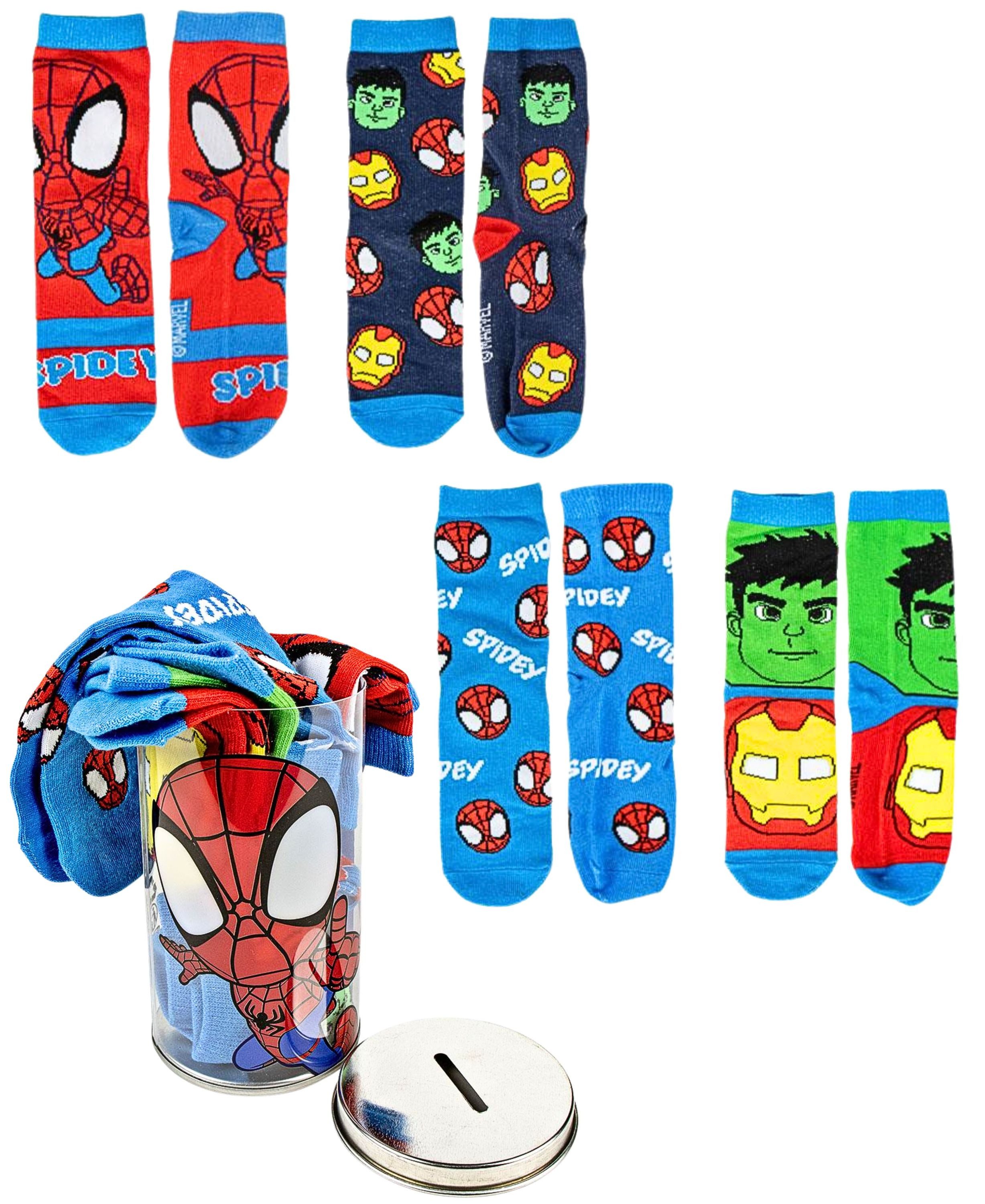 Die Spardose ist im auffälligen „Spidey and His Amazing Friends“-Design gestaltet und besteht aus weichem Kunststoff. Im Set enthalten sind vier Paar Socken mit Spidey, Hulk und Iron Man Motiven – alle in leuchtenden Farben und coolen Designs, die die Charaktere der Serie zum Leben erwecken. Jedes Paar sorgt für ein aufregendes Gefühl von Heldentum bei jedem Schritt.