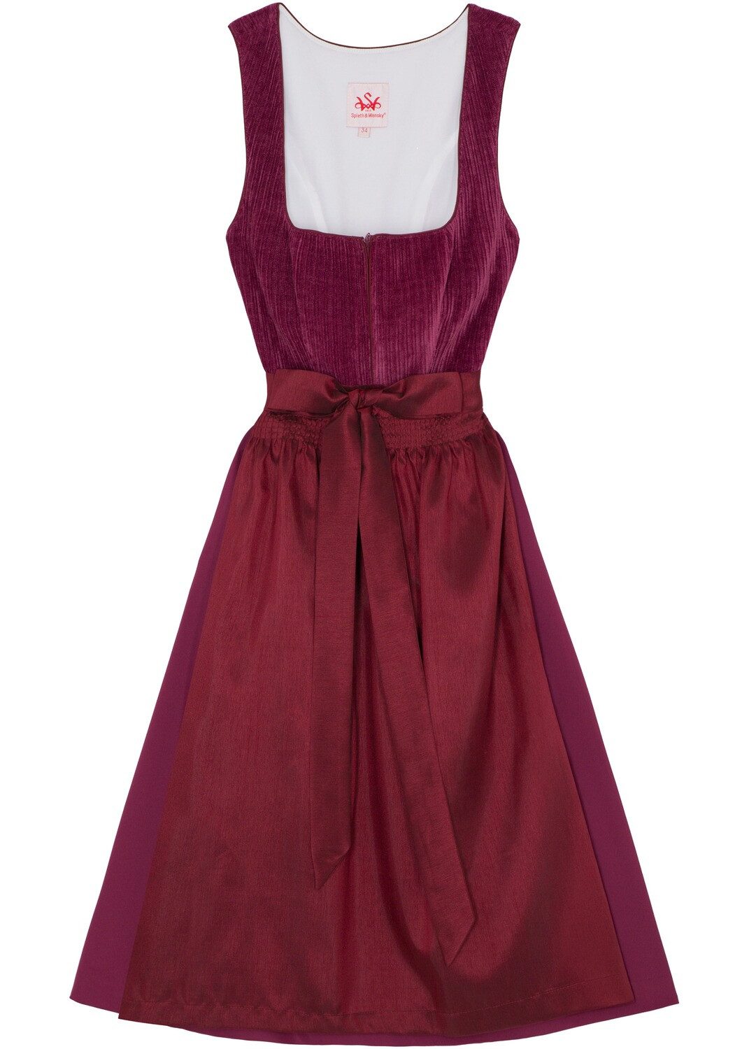 Ein Dirndl, das Tradition und Moderne vereint Das Dirndl Modell Grant von Spieth & Wensky präsentiert sich in einem eleganten Beerenton. Dieser Farbton ermöglicht zahlreiche Kombinationsmöglichkeiten mit verschiedenen Accessoires und Schuhen. Dadurch lässt sich der individuelle Stil wunderbar betonen. Das Dirndl zeichnet sich durch seinen hochwertigen Breitcord aus, der dem Oberteil eine besondere Struktur verleiht. Der Reißverschluss vorne mittig sowie der Balkonett-Ausschnitt sorgen für eine klare, moderne Linie. Hochwertige Materialien für ein angenehmes Tragegefühl Der Rock und die Schürze sind Ton-in-Ton gehalten, was dem Gesamtbild eine harmonische Note verleiht. Die Qualität der Materialien gewährleistet ein komfortables Tragegefühl, das den ganzen Tag über anhält. Eine sorgfältige Verarbeitung unterstützt die Passgenauigkeit und die Langlebigkeit des Dirndls. So kann man sich sicher sein, dass es auch bei häufigem Tragen seine Form und Attraktivität behält. Vielseitigkeit für verschiedene Anlässe Dieses Dirndl eignet sich für viele Gelegenheiten. Ob zu einem traditionellen Fest oder einer modernen Feier, das Modell bietet Flexibilität in der Kombination und Anpassung. Es lässt sich mit unterschiedlichen Accessoires variieren und so an den jeweiligen Anlass anpassen. Damit wird jeder Auftritt zu einem stilvollen Highlight. Ein Dirndl, das Tradition und aktuelle Trends geschickt miteinander verbindet. Oberstoff: 95% Polyester, 5% Elasthan; Futter: 95% Polyester, 5% Elasthan; Sonstige Materialien: Schürze, 100% Polyester, Rock, 97% Polyester, 3% Elasthan