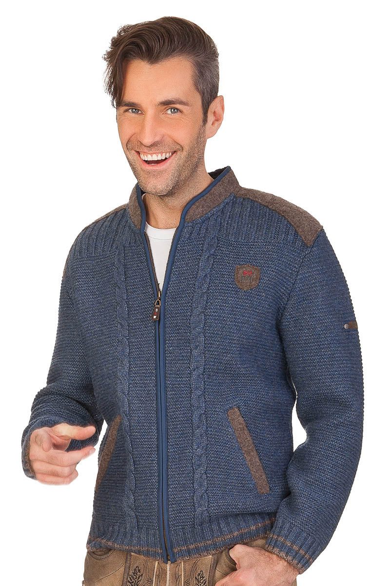 Die fesche Strickjacke Graham mit ihrem schickem Zopfmuster und den Walkeinsätzen mit Ziernaht ist zünftig und sportlich zugleich. Sie wird mit Reißverschluss vorn windgeschützt geschlossen und die weiche, feine Merinowolle hält bei kalten Temperaturen schön warm. Der elegante Stehkragen, die Reißverschlussleiste und die zwei Eingrifftaschen vorn sind robust umnäht und verstärkt mit Stoff. Zusätzlich besitzen Stehkragen und Taschen sowie die Schulterpartien Walkeinsätze. Am rechten Arm unten schmückt die Herren Jacke eine kleine schöne Hirschkopfstickerei und auf der linken Brust ein besticktes Walkwappen. Die urige Trachten Jacke ist mit ihrem Innenfutter im Nackenbereich aus Baumwolle angenehm zu tragen, zudem formbeständig und bequem.