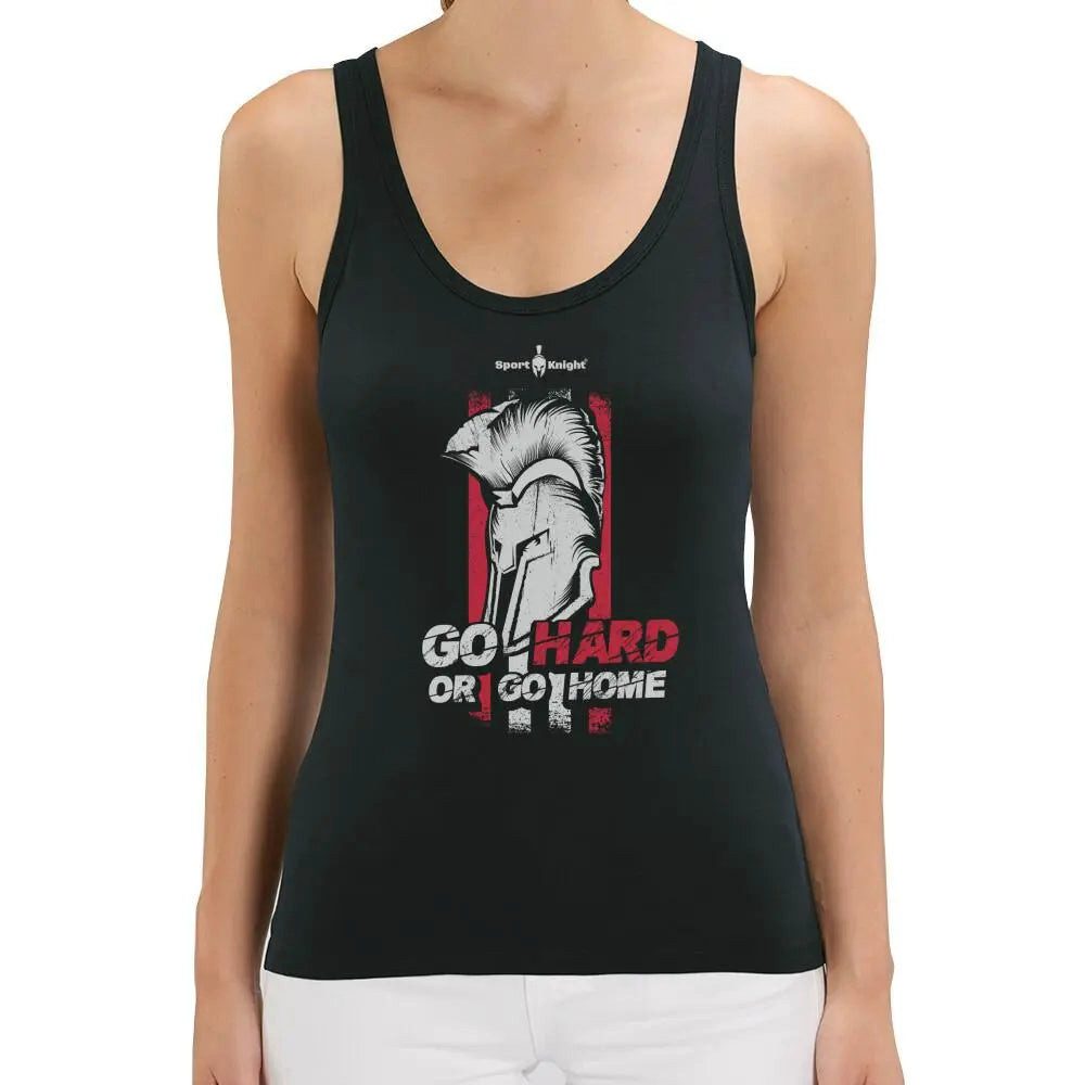Vorderseitiger Aufdruck „Go Hard or Go Home“ im Brustbereich – stilvoll kombiniert in schwarz oder weiß /rot. Setzt ein sportliches Statement und motiviert, auch bei Rückschlägen durchzuhalten.