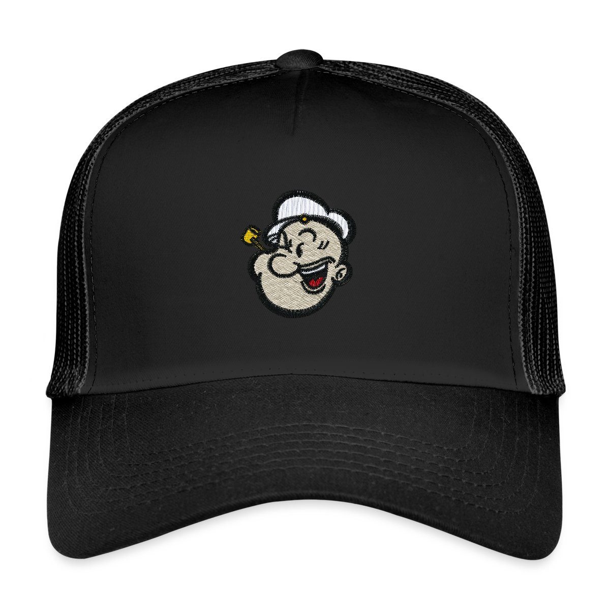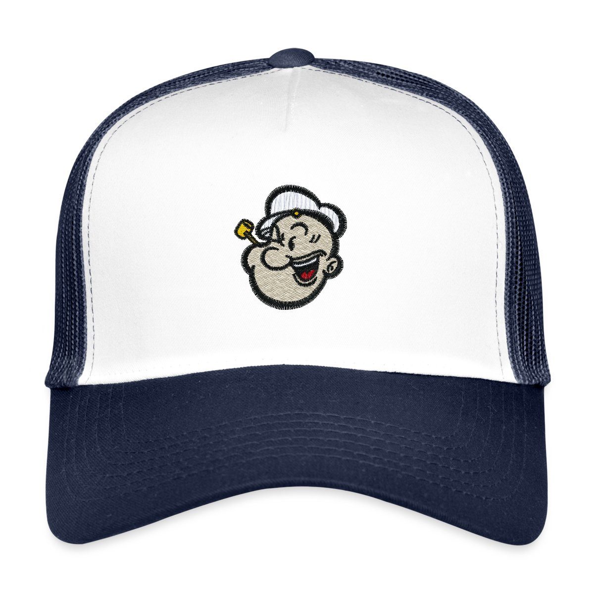 5-Panel-Cap, davon 4 Netzpaneele aus Mesh. Mehrfach größenverstellbar am Hinterkopf. Schirm mit sechsreihiger Ziernaht.