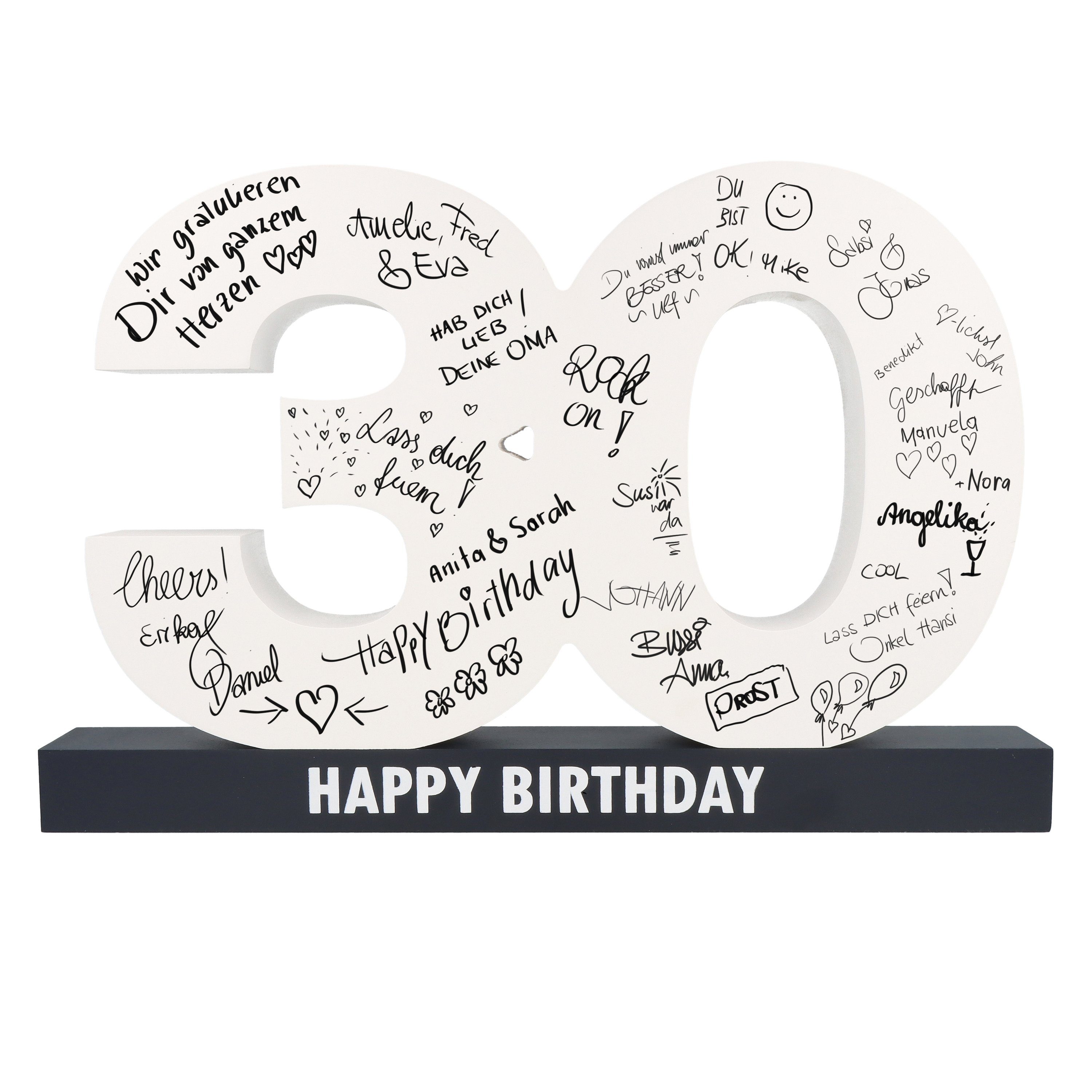 Die Geburtstagszahl, ist Geschenk und Gästebuch zu gleich. Auf der Zahl können sich alle Gäste der Feier mit einer persönlichen Botschaft an das Geburtstagskind verewigen.