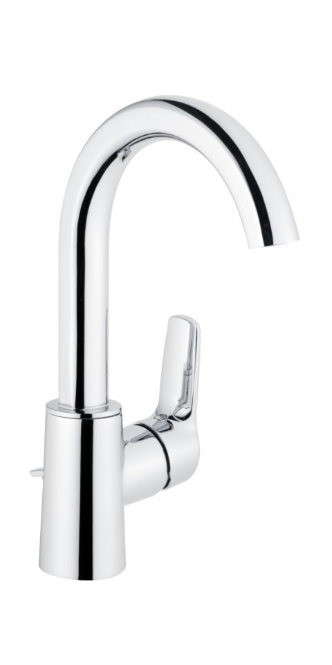 Der zylindrische Grundkörper der seitengesteuerten Armatur verjüngt sich sanft nach oben und bildet damit eine stilvolle Basis für den sich in weitem Bogen erhebenden Schwenkauslauf. Die brillante Chromoberfläche untersteicht wirkungsvoll die Schönheit dieser Armatur. Leicht beweglich und ergonomisch sensibel abgestimmt, schließt der im Übergang markant gestaltete Hebel die Armatur formvollendet ab. Der mit wirkungsvollem Kalkschutz ausgestattete Strahlregler gewährleistet eine optimal belüftete Strahlqualität. Zur Steuerung der Ablaufgarnitur integriert sich im hinteren Bereich dezent die leichtgängige Zugstange, die durch ihre Form auch mit nassen Händen bequem und sicher zu bedienen ist.