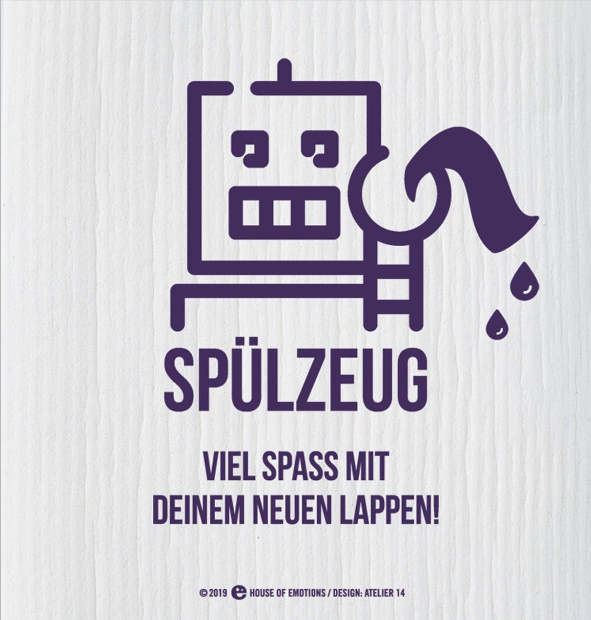 Der Spüllappen von House of Emotions sorgt für mehr Abwechslung in der Küche und im Haushalt. Der Lappen ist einzigartig und witzig gestaltet - so macht die Hausarbeit direkt viel mehr Spaß. Das Spültuch ist aus den beiden nachwachsenden Rohstoffen Cellulose und Baumwollfaser hergestellt. So ist es nicht nur besonders saugstark und haltbar, sondern ebenfalls nachhaltig. Das Tuch ist zudem vielseitig einsetzbar und kann nach jeder Benutzung ohne Probleme bei bis zu 60° in der Waschmaschine gewaschen werden. Sollten Sie den Putzlappen austauschen wollen, lässt er sich einfach und unkompliziert entsorgen und zersetzt sich auf natürliche Weise von selbst.
