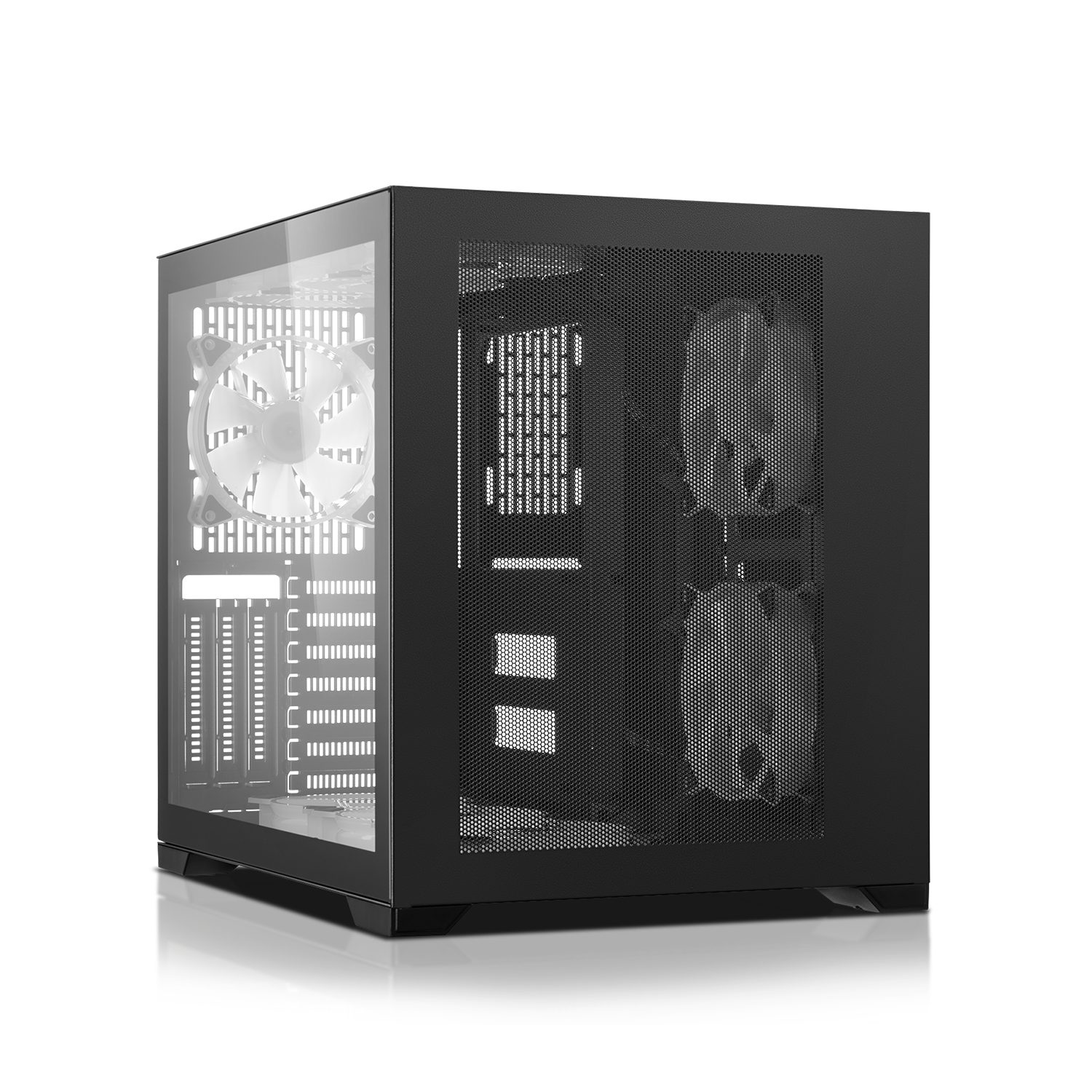 Seitenwänden aus 4 mm gehärtetem Glas schützt nicht nur wertvolle Komponenten, sondern