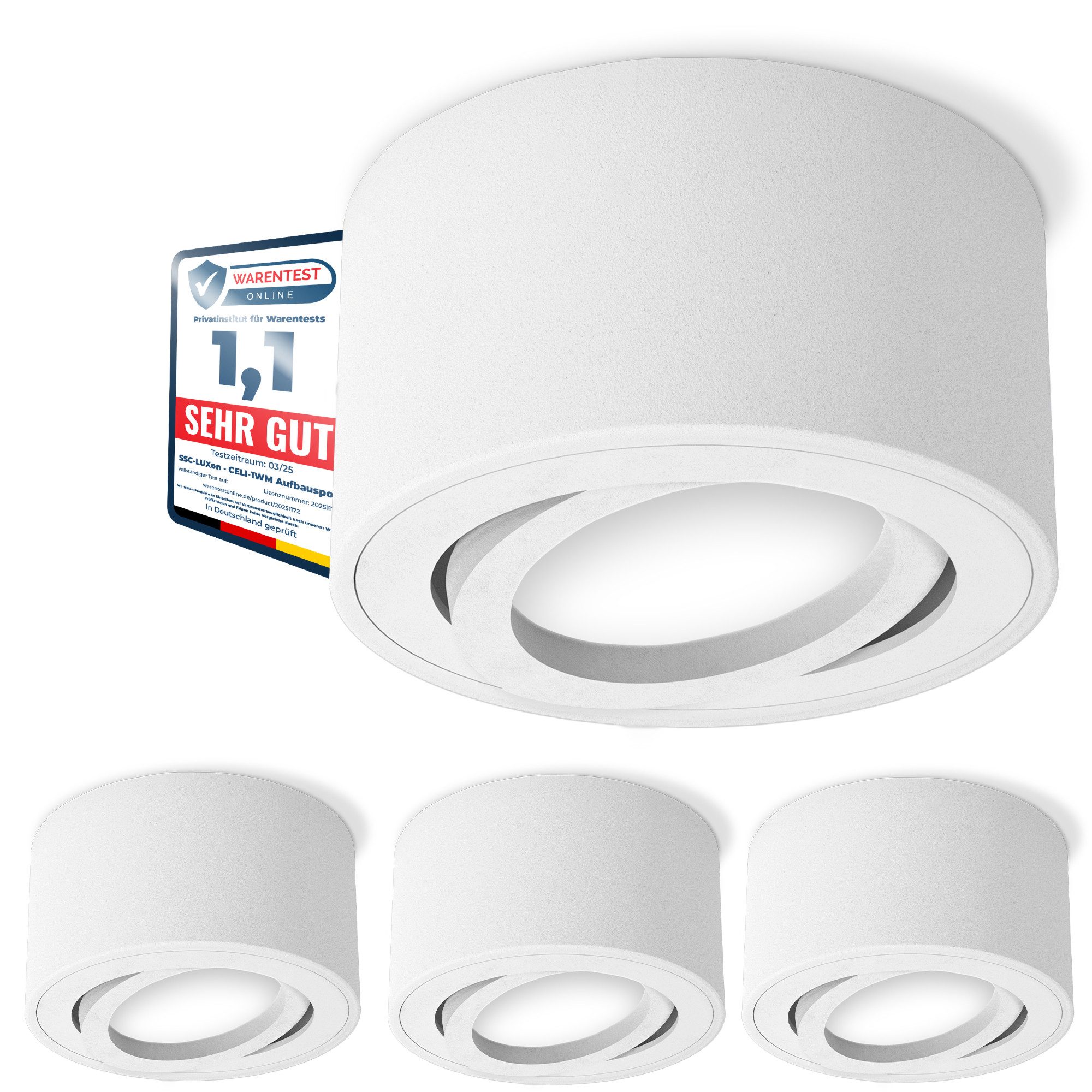 Lieferumfang | 4x Aufbauleuchte CELI-1WM-4x Schrauben & Dübel zur Montage- |