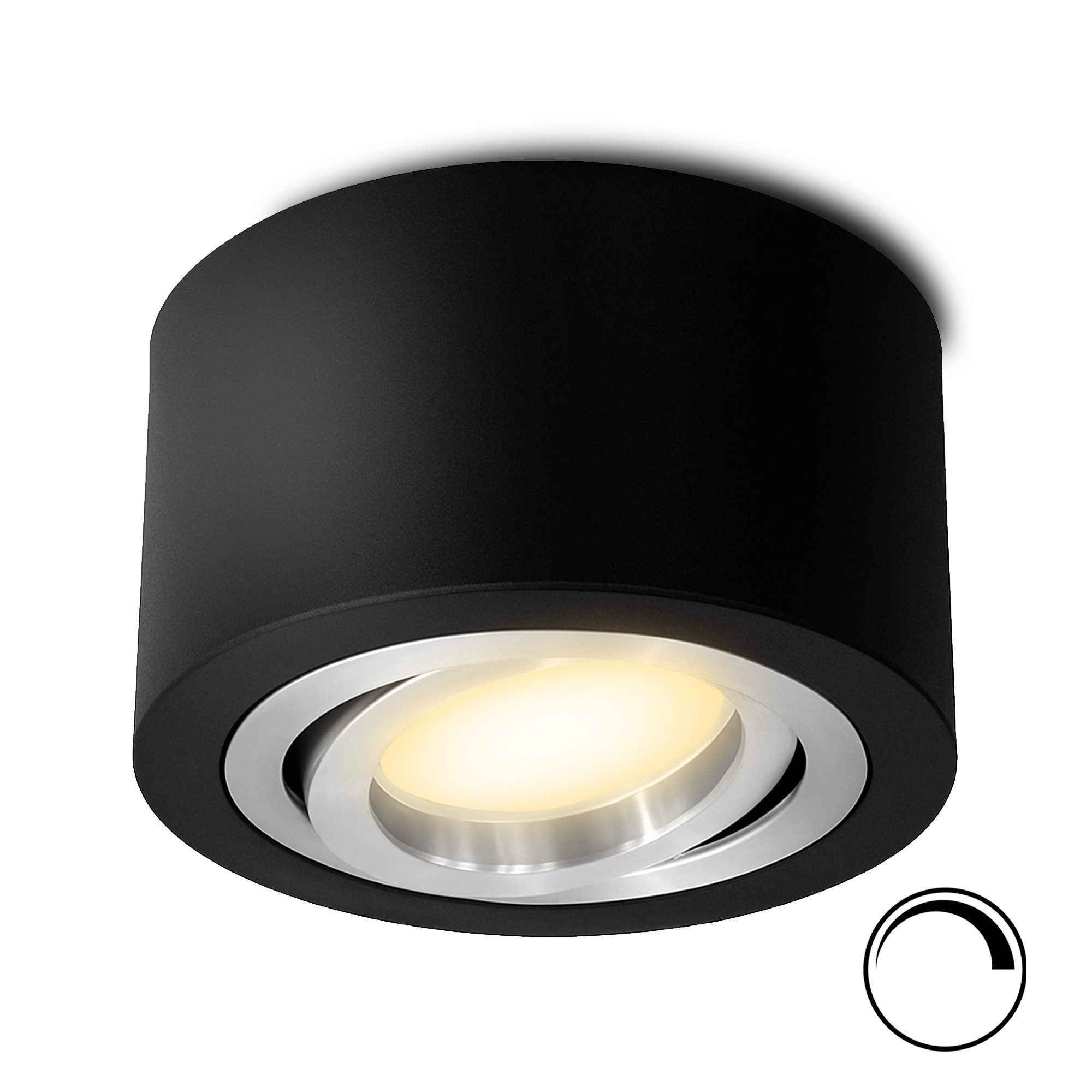 Lieferumfang | Aufbauspot Deckenlampe schwarz rund schwenkbar-Dimmbares LED Leuchtmittel Modul 4W warmweiß-Schrauben und Dübel zur Montage |