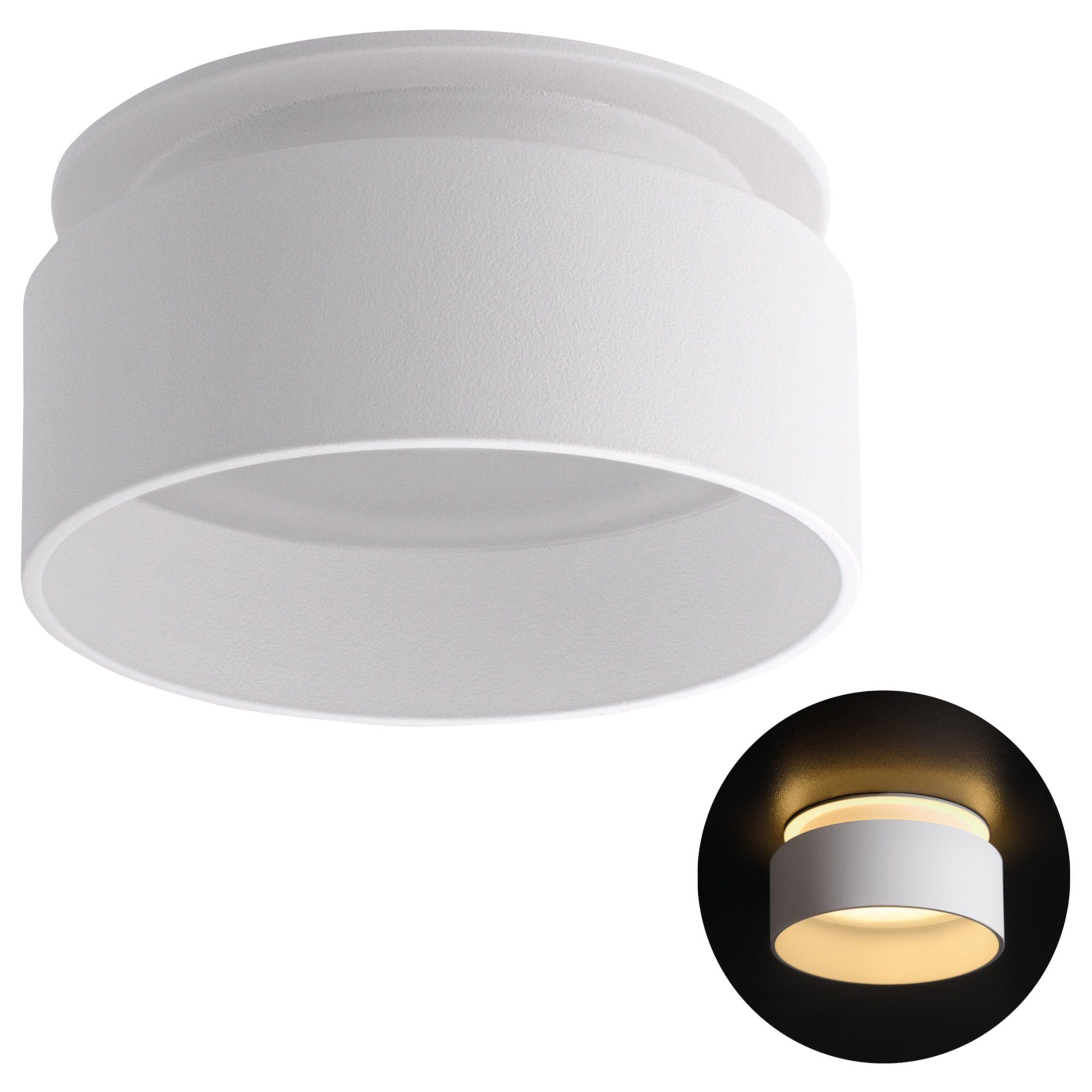 Durch diesen Aufbauring entsteht nämlich eine schöne passive Lichtquelle, die an der Decke einen warmen und gleichmäßigen Lichtring entstehen lässt.