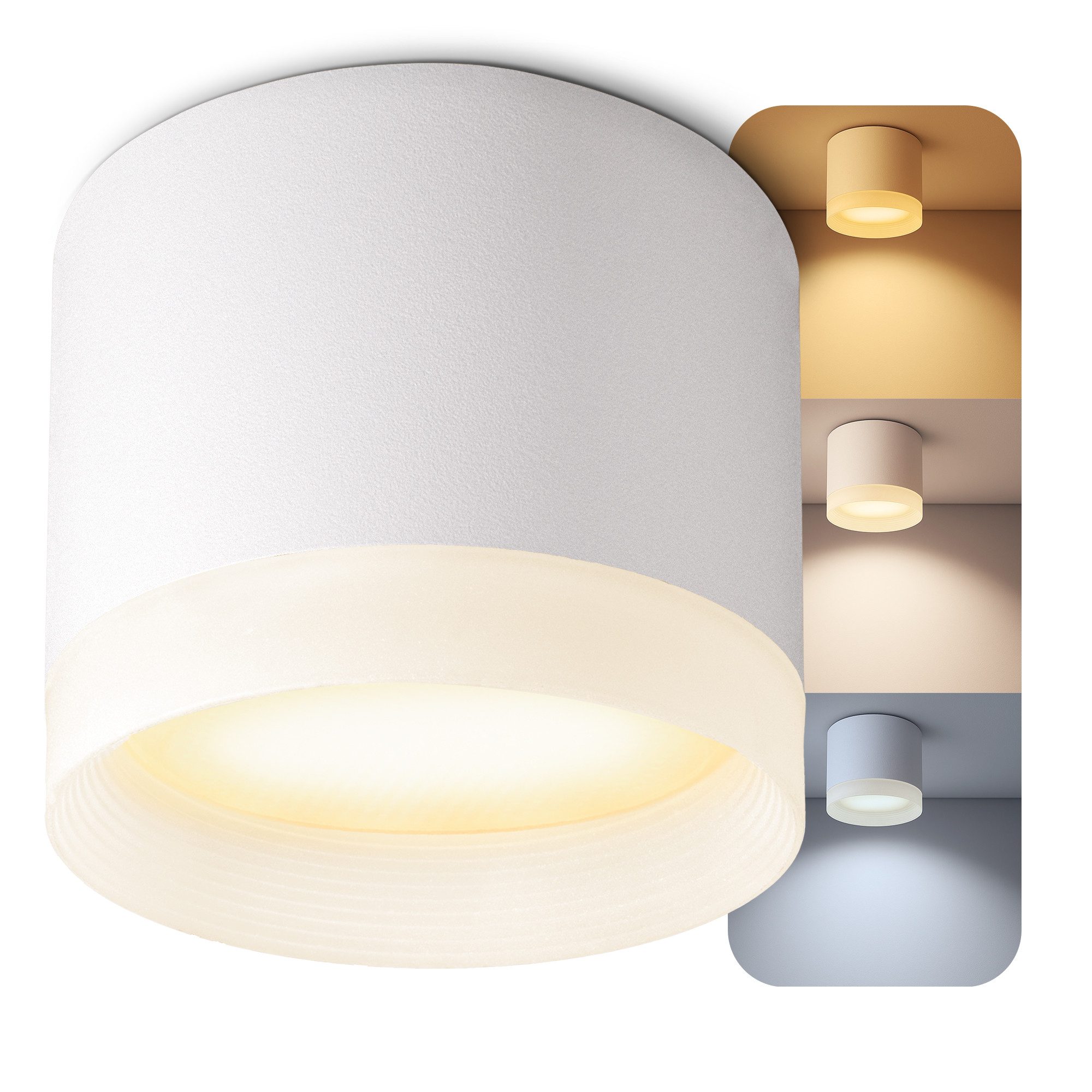 Lieferumfang | 1x VORA Aufbauleuchte in weiß mit Leuchtrand-1x GX53 Leuchtmittel warmweiß- |