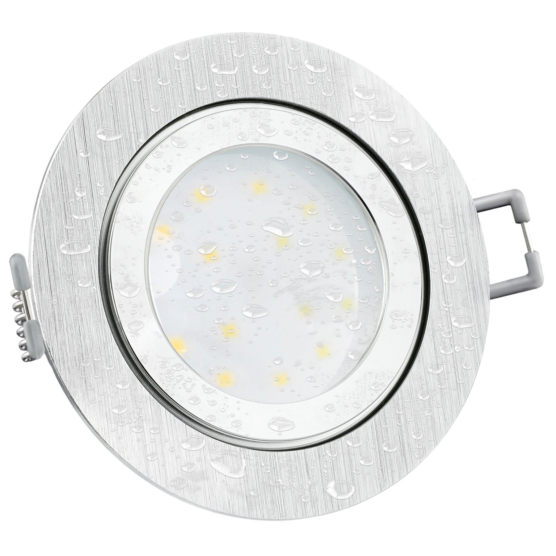 Lieferumfang | RW-2 Einbaustrahler Alu gebürstet, IP44, starr-fourSTEP dim FM-2 inkl. 20cm Anschlusskabel, Lichtfarbe warm weiß- |