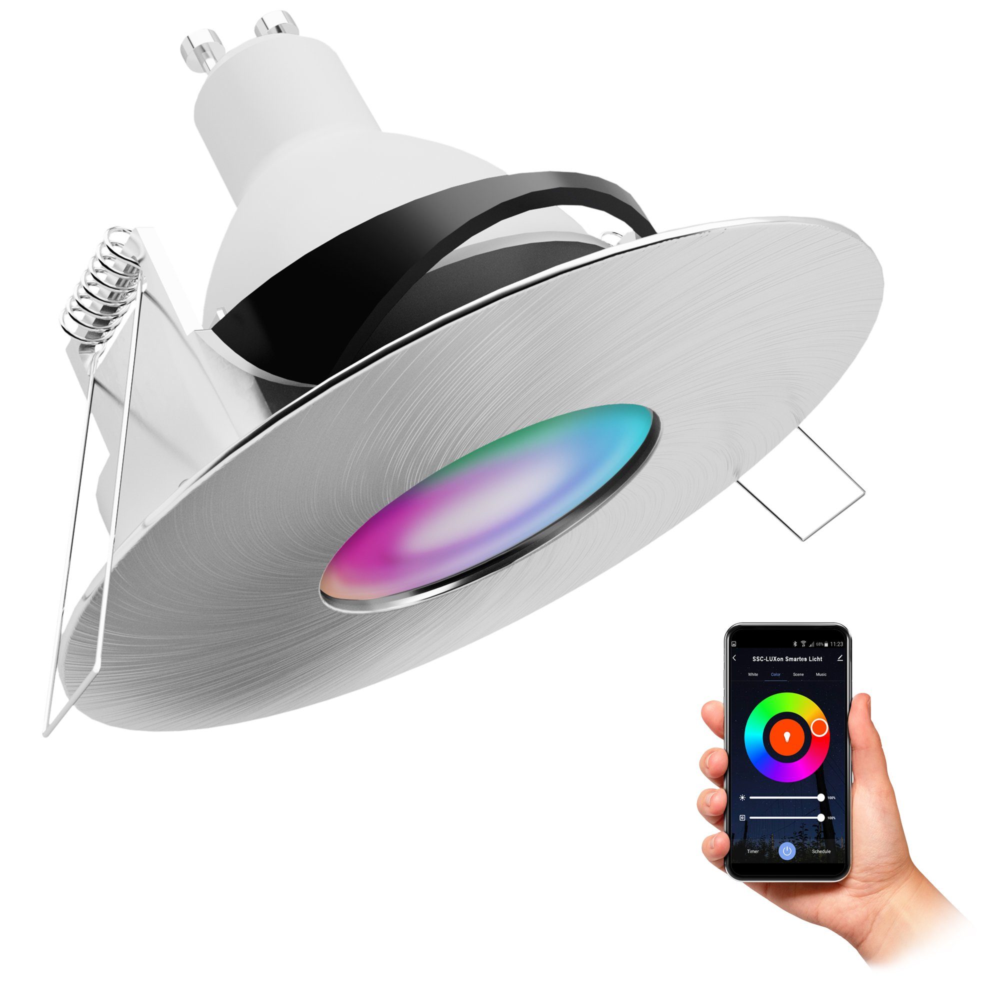 Bei ausreichend WLAN Empfang (2,4 Ghz) lässt sich die schwenkbarer Deckeneinbauleuchte über die kostenlose App „Smart Life – Smart Living“ einrichten und steuern. Auch Sprachassistenten können genutzt werden. Die RGB Deckeneinbauleuchte ist kompatibel mit Amazon Alexa (ab 2. Gen Echo), Siri oder Google Home.
