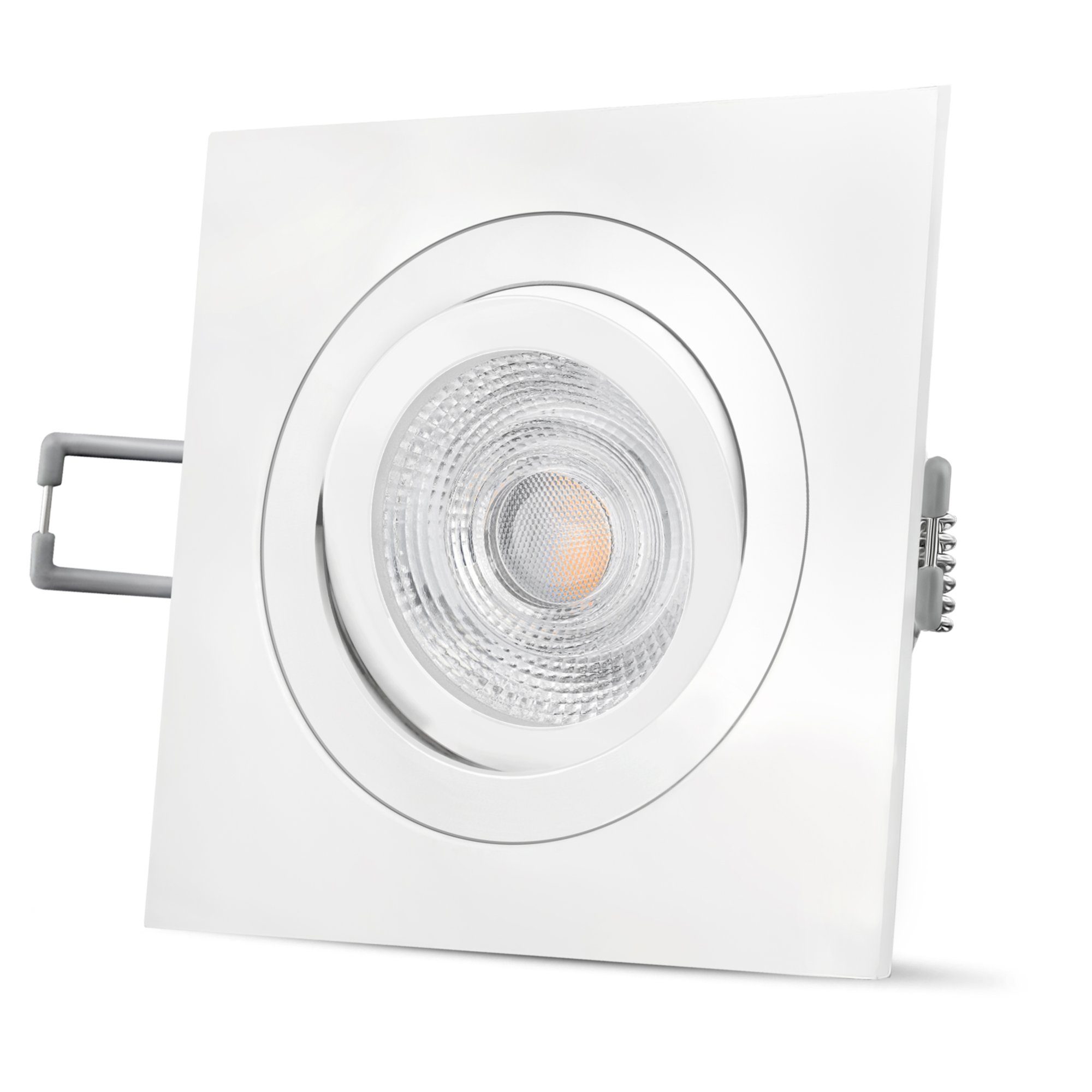 Lieferumfang | 1x QF-2 Einbaustrahler matt weiß-1x LED GU10 6W warmweiß-1x GU10 Fassung mit Anschlusskabel |