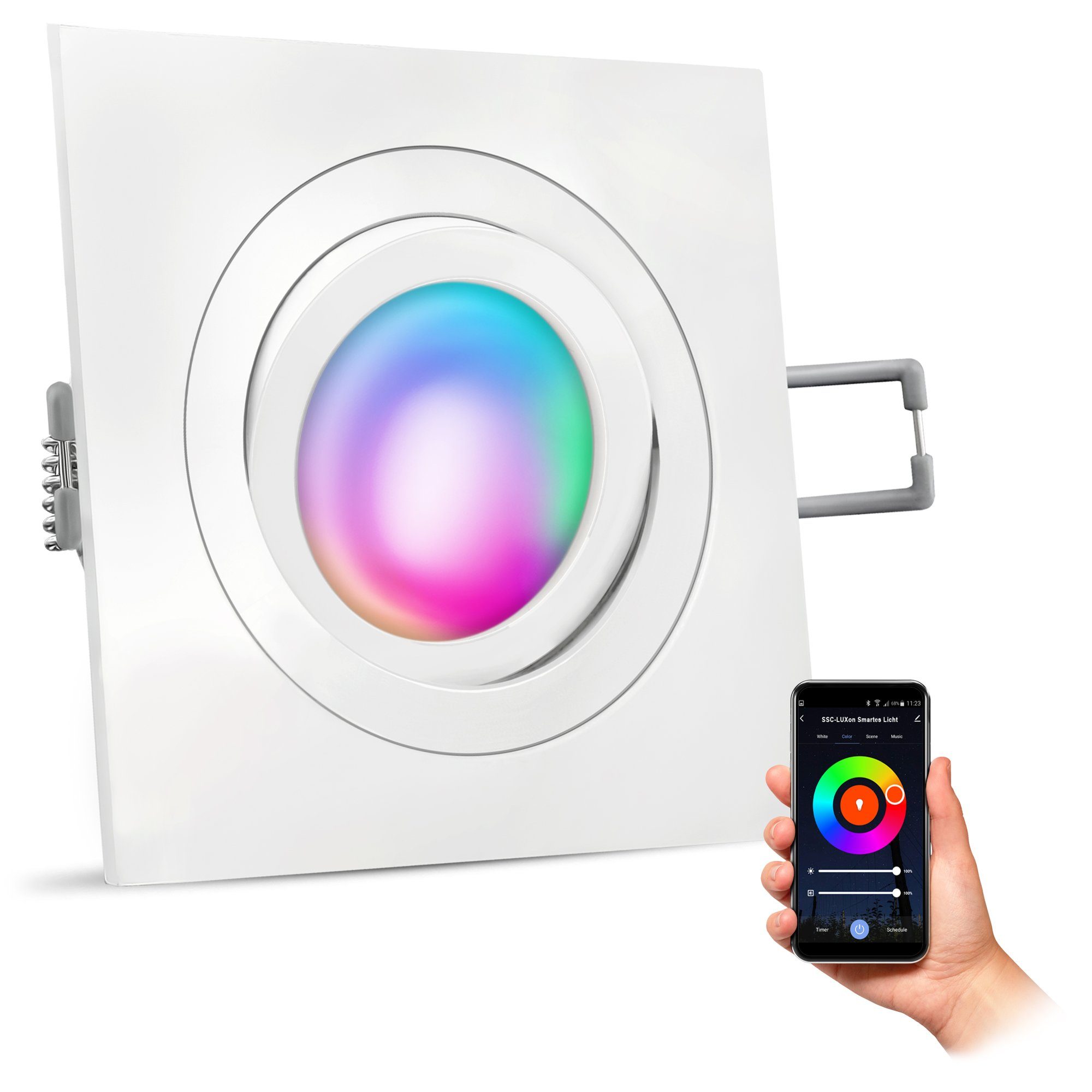 Lieferumfang | 1x QF-2 Einbaustrahler weiß matt-1x Smart LED GU10 Leuchtmittel-1x GU10 Fassung |