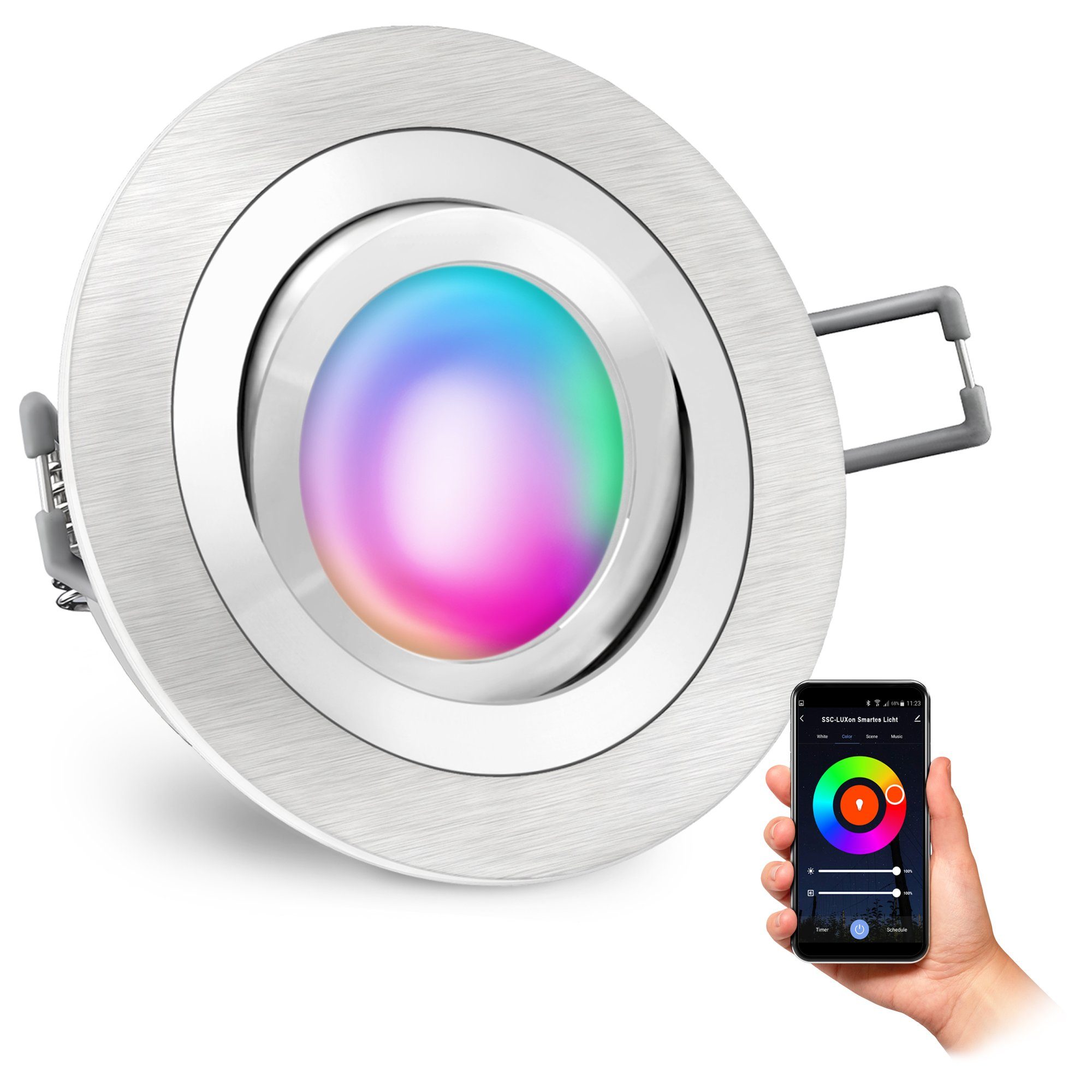 Lieferumfang | 1x RF-2 Einbaustrahler Alu gebürstet-1x EYLA Smart LED GU10 Strahler-1x GU10 Fassung |