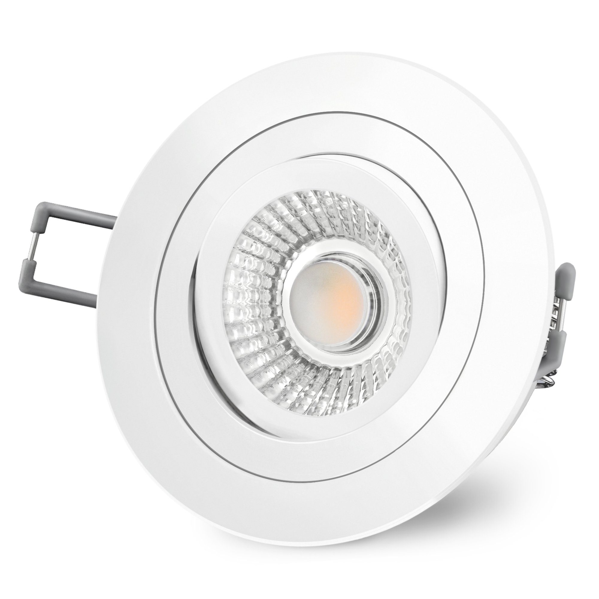 Lieferumfang | 1x RF-2 Einbaustrahler Alu weiß lackiert, schwenkbar-1x LED-Modul 6 Watt, 350 Lumen, dimmbar, 2700 Kelvin warmweiß, 36° Abstrahlwinkel- |