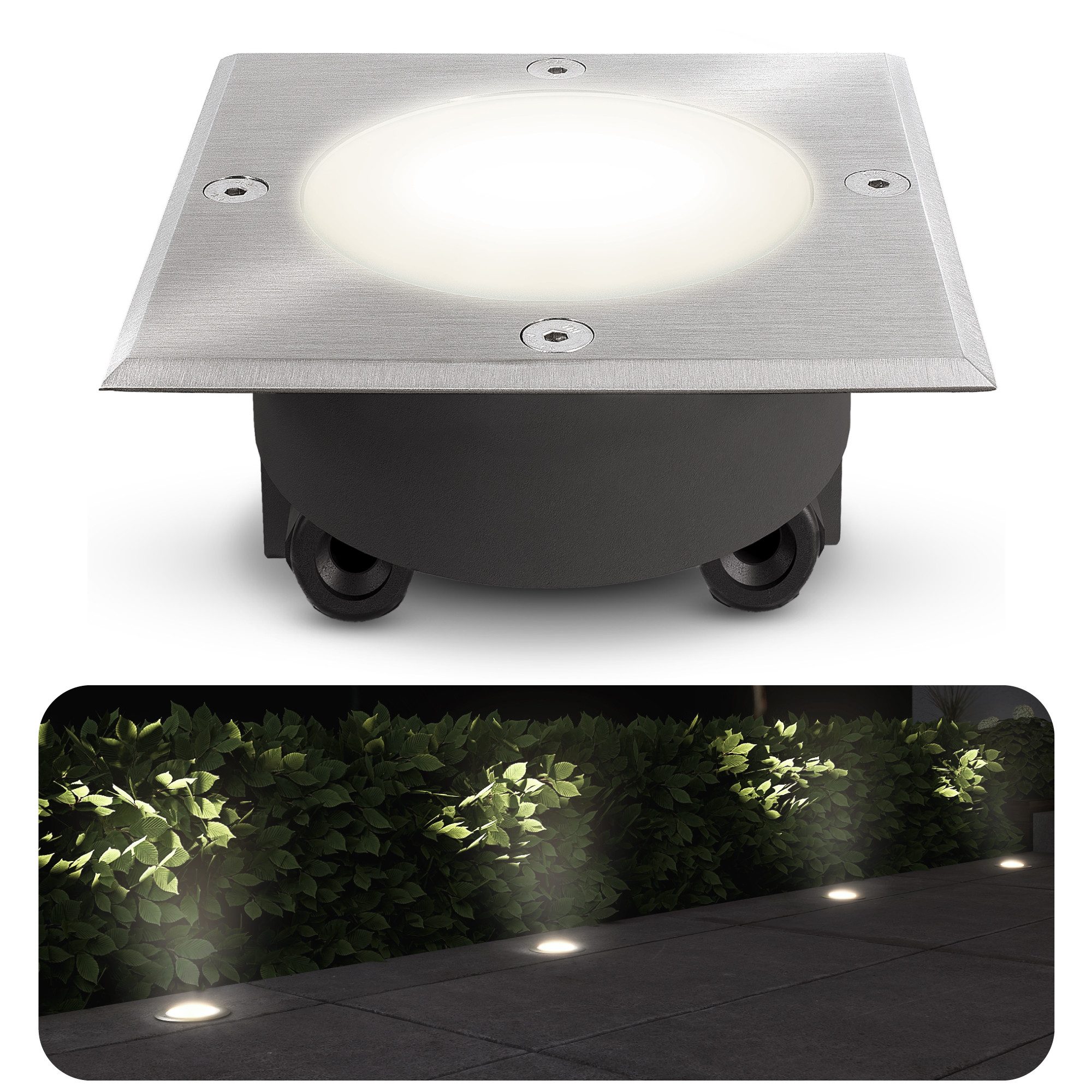 Lieferumfang | 1x VIROK Bodeneinbaulampe eckig GX53-1x LED Leuchtmittel GX53 3W neutralweiss 230V- |