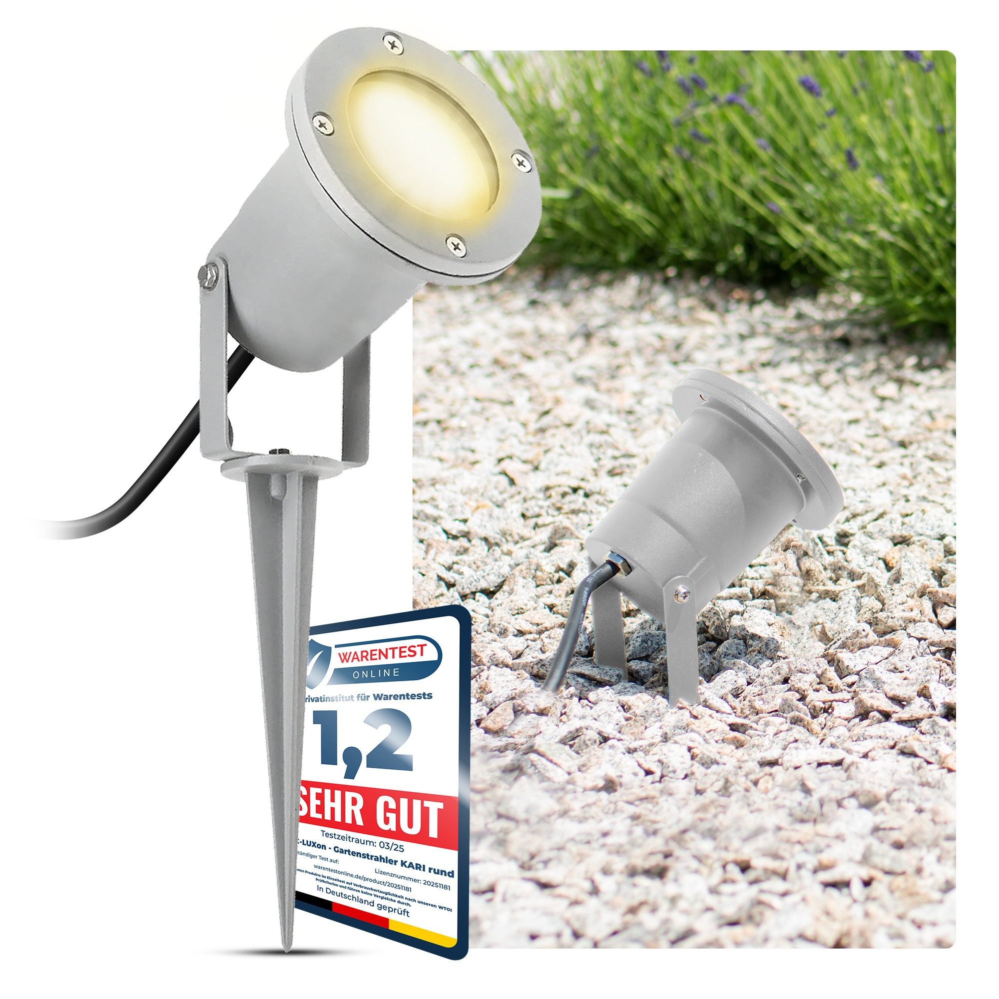 Lieferumfang | 1x Gartenlampe mit Erdspieß silber grau GU10-1x LED Leuchtmittel GU10 3W warmweiß 230V- |