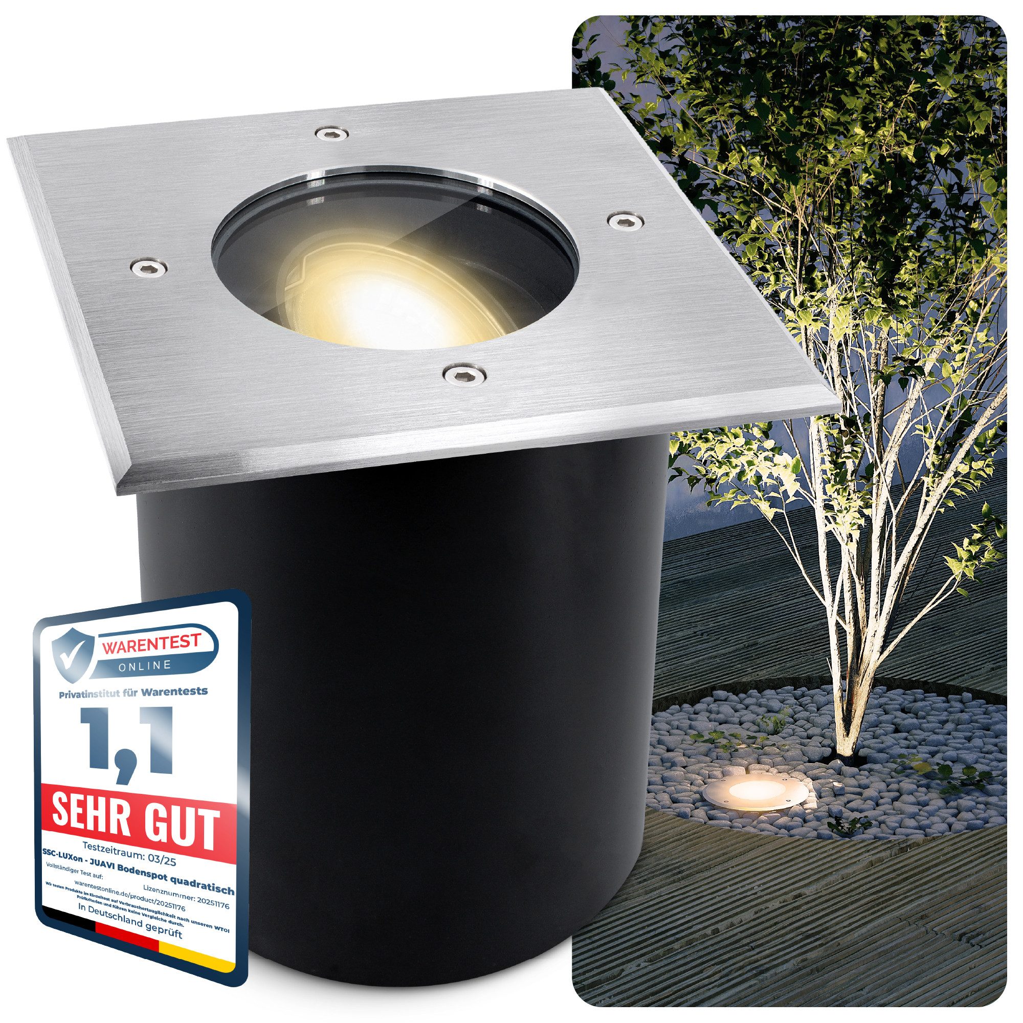 Bei LED Bodenleuchten stehen Licht & Funktionen im Vordergrund. Der optisch sehr schlichte und quadratisch Bodenstrahler JUAVI wird durch die wechselbare Glaseinlage, der Schwenkfunktion und der Möglichkeit das Leuchtmittel zu wechseln zur vielseitigen Außenbeleuchtung.