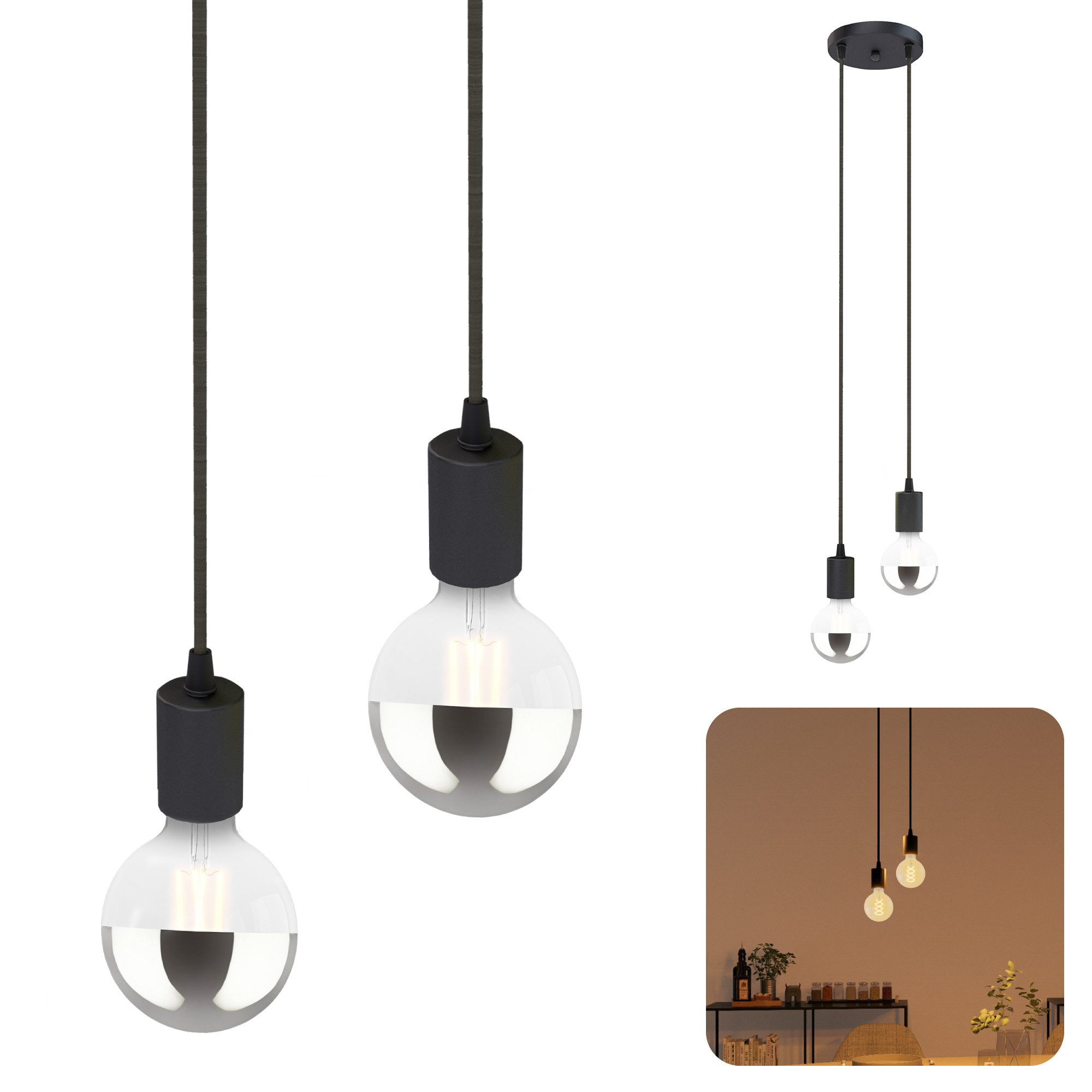 Lieferumfang | 1x PARU 2-flammige Pendelleuchte in schwarz-2x LED E27 Kopfspiegel Lampe warmweiß- |