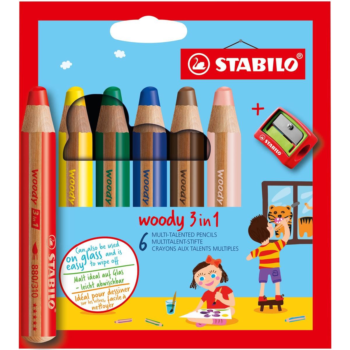 • Buntstift, Wasserfarbe & Wachsmalkreide - STABILO woody 3 in 1 - 6er Pack - mit 6 verschiedenen Farben