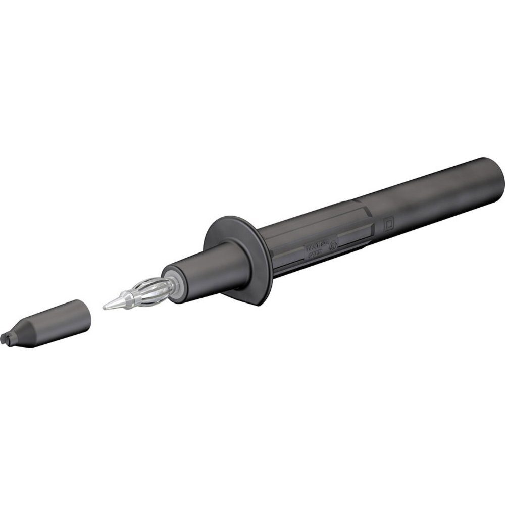 Ø 4 mm, mit federnder MULTILAM. Der abgeflachte Griffschutzkragen verhindert ein Abrollen von schrägen Flächen und ermöglicht es, die Prüfspitzen eng nebeneinander zu stecken. Starre Ø 4 mm-Buchse im Isolierkörper, geeignet zur Aufnahme federnder Ø 4 mm-Stecker mit starrer Isolierhülse.