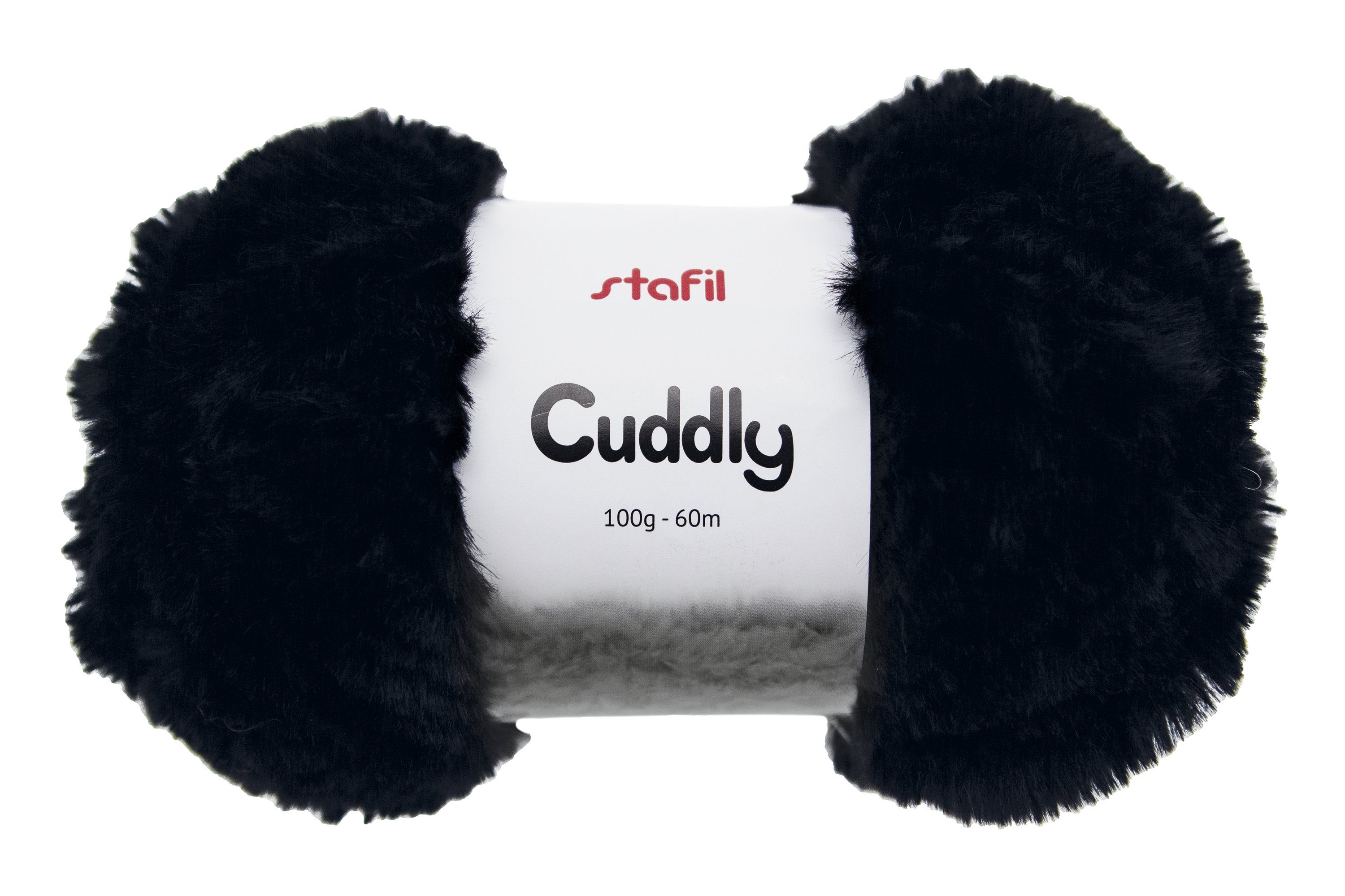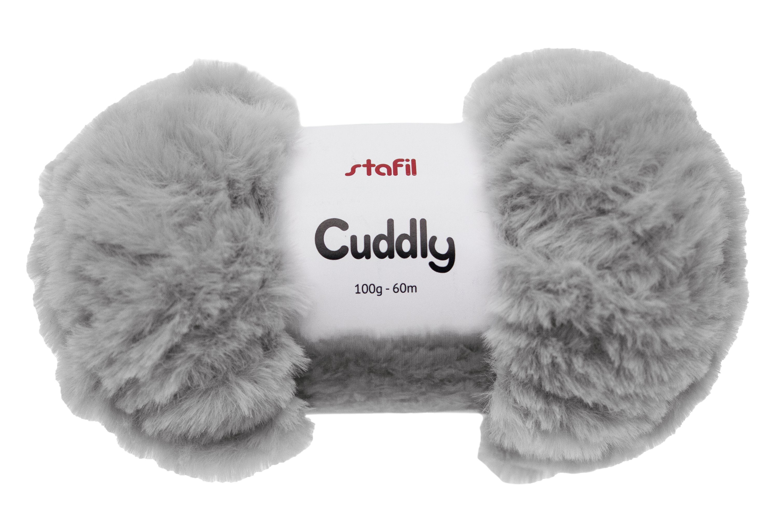 Die Wolle „Cuddly“ ist ca. 100 g schwer und besitzt eine Lauflänge von ca. 60 m. Das aus 100 % Polyester bestehende Garn wirkt wie Plüsch. Es wird eine Nadelstärke von 10 – 12 empfohlen. Für eine Mütze wird ein Knäuel benötigt. Aufgrund des Effekts auch toll für Teddybären und Kuscheltiere geeignet.