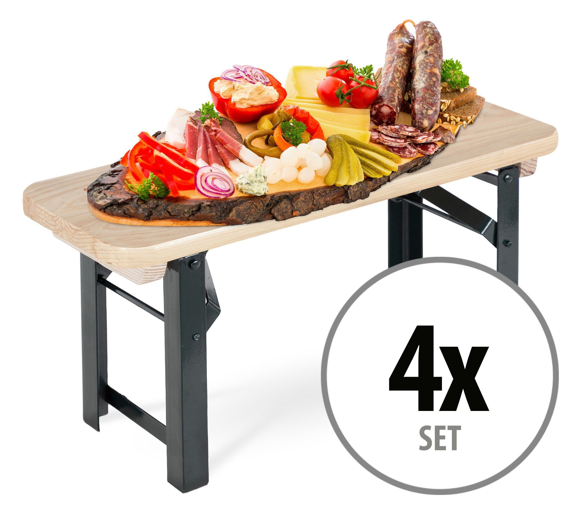 Sollte der Arbeitseifer in der Küche mal die wieder die gegebenen Platzverhältnisse überschritten haben, schafft das Bierzeltbankerl schnell Abhilfe. Einfach die stabilen Beine auseinandergeklappt und auf dem Tisch positioniert, sorgt diese zusätzliche Etage für mehr Stellfläche bei jeder Brotzeit. Durch den Aufbau in zwei Ebenen wird das gesamte Buffet gleichzeitig übersichtlicher, da z.B. Soßen oder Brot prominent platziert werden können. Dass die Optik des Aufsatzes zusätzlich gemütliche Assoziationen weckt, versteht sich von selbst.