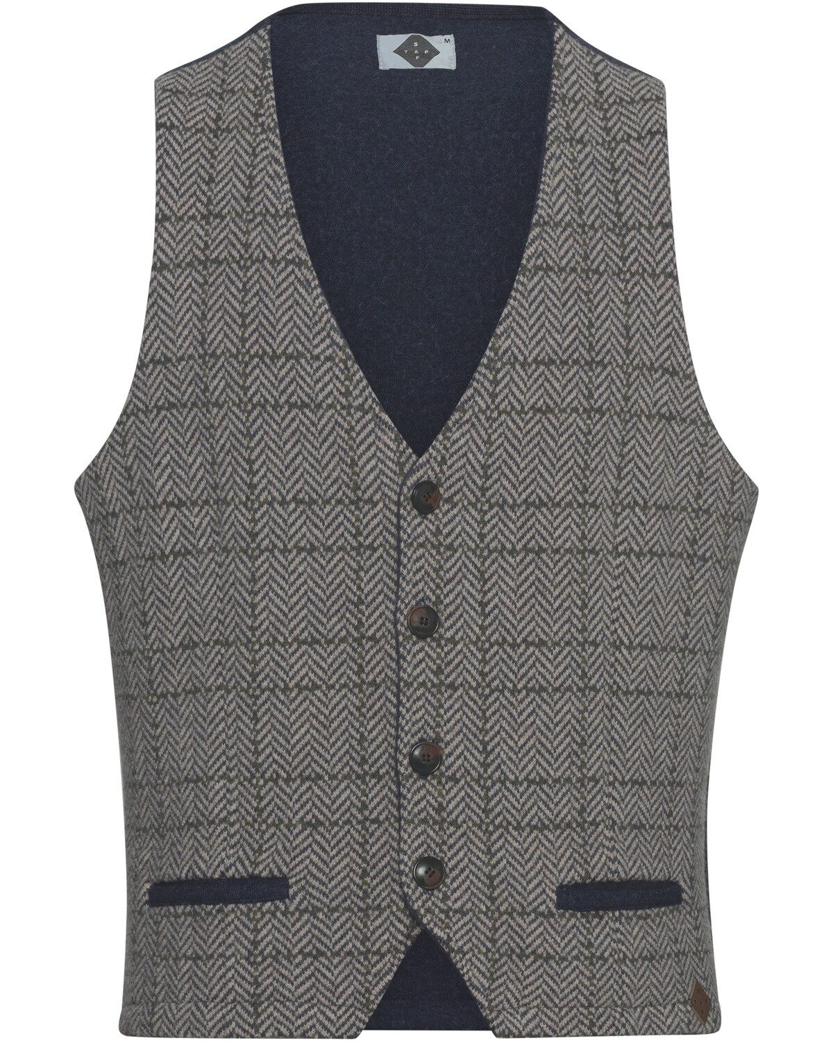 Die Herrenweste Godwin von Stapf aus Österreich kombiniert traditionelles Handwerk mit modernem Stil und ist ein unverzichtbares Kleidungsstück für modebewusste Männer. Der hochwertige Schurwolle-Baumwolle-Mix und das zeitlose Fischgrat-Karo-Jacquard-Muster in Kombination mit dem klassischen V-Ausschnitt verleiht der Weste einen eleganten Look, der sowohl für formelle Anlässe als auch für legere Zusammenkünfte geeignet ist. Die sorgfältige Verarbeitung und die hochwertigen Materialien garantieren eine angenehme Trageerfahrung und Langlebigkeit. Praktische Details wie die zwei Taschen sorgen für Funktionalität und bieten ausreichend Platz für kleine Utensilien oder persönliche Gegenstände. Die Knopfleiste mit edlen Hornknöpfen unterstreicht den hochwertigen Charakter der Weste und sorgt für einen stilvollen Akzent. Der Rücken in einem tiefen Blau setzt einen zusätzlichen Farbakzent und rundet das Gesamtbild harmonisch ab. Die Godwin Weste ist ideal zum Layern, kann jedoch auch als eigenständiges Statement-Piece getragen werden. Sie lässt sich vielseitig kombinieren und ergänzt sowohl klassische als auch moderne Outfits. Mit dieser Weste wird jeder Look aufgewertet, während gleichzeitig ein Hauch von zeitloser Eleganz vermittelt wird. Oberstoff: 50% Schurwolle, 50% Baumwolle