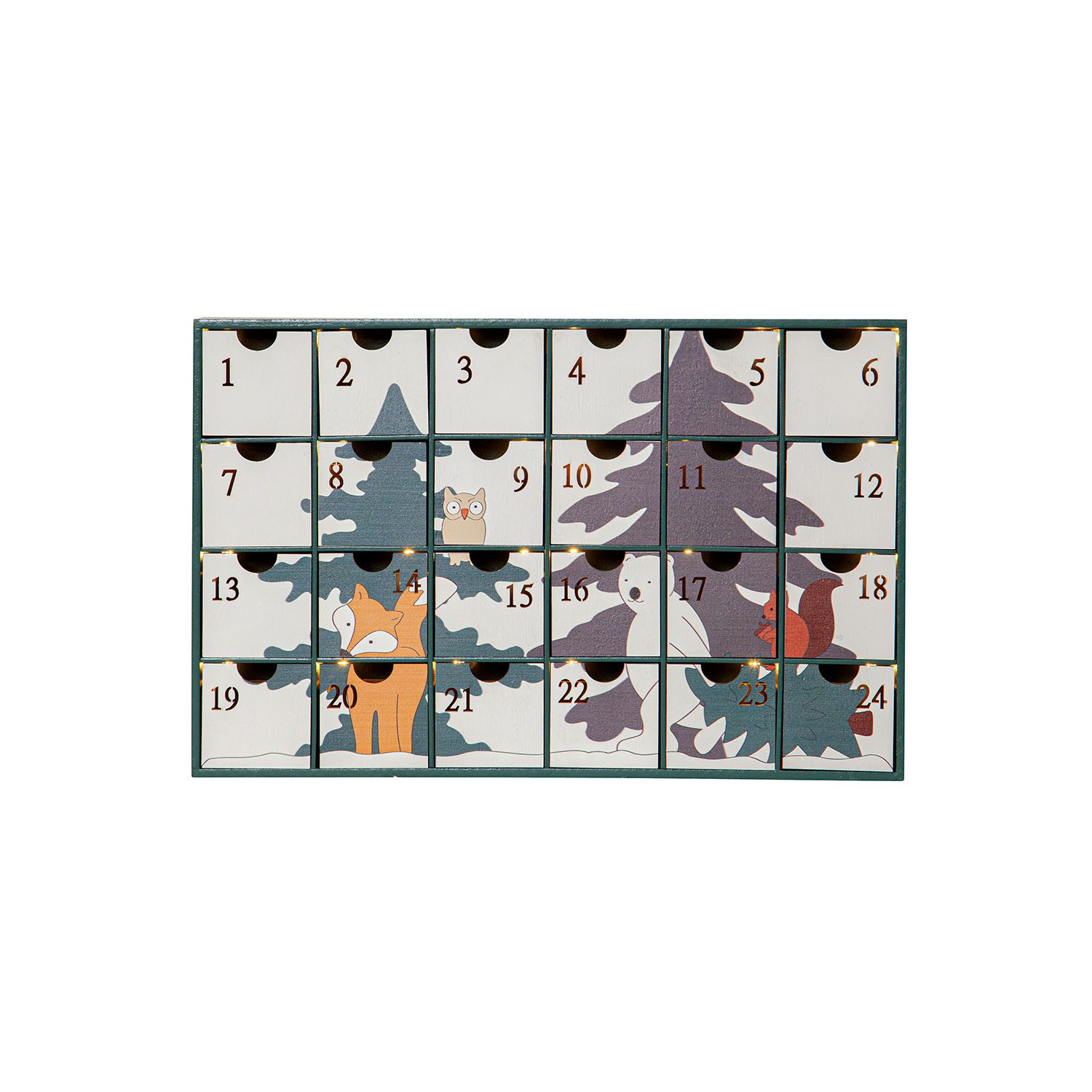 Beleuchteter Weihnachtskalender ,Forest Friends' aus Holz, Tiermotive, 24 Schubladen mit LED-Beleuchtung, B 38cm
