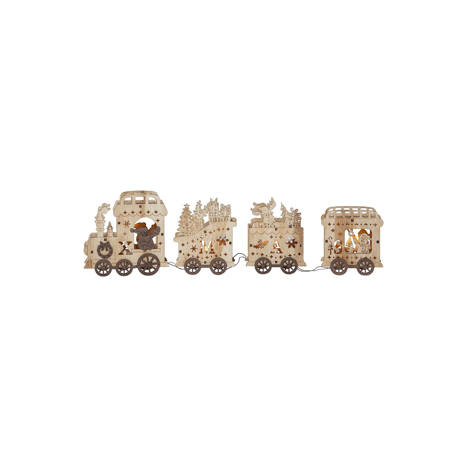 Batteriebetriebener Weihnachtszug ,Yuletide' aus Holz, 4 LEDs, Weihnachtsdeko, 54cm